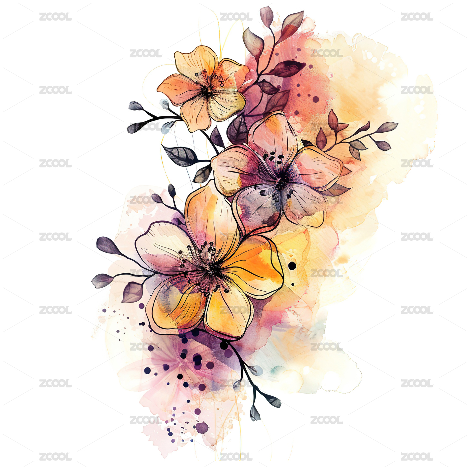 水彩花卉艺术插画