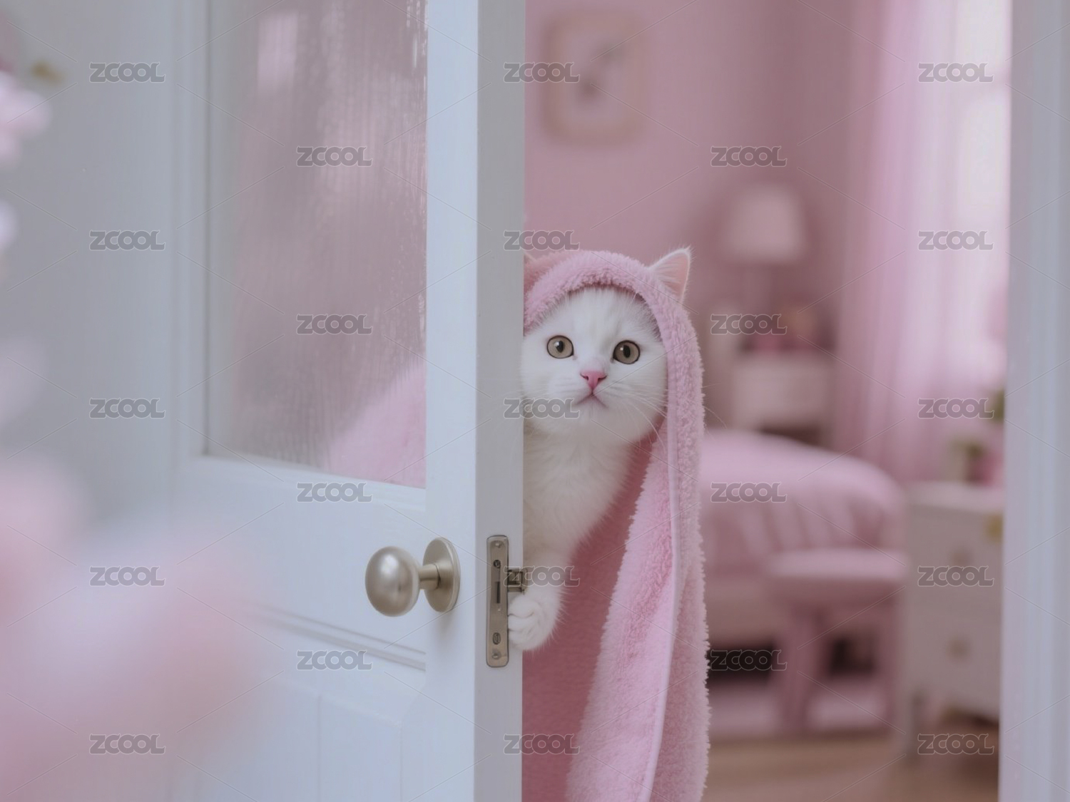 可爱,甜美,治愈,粉色,白色,室内,猫咪,宠物,小猫,萌宠