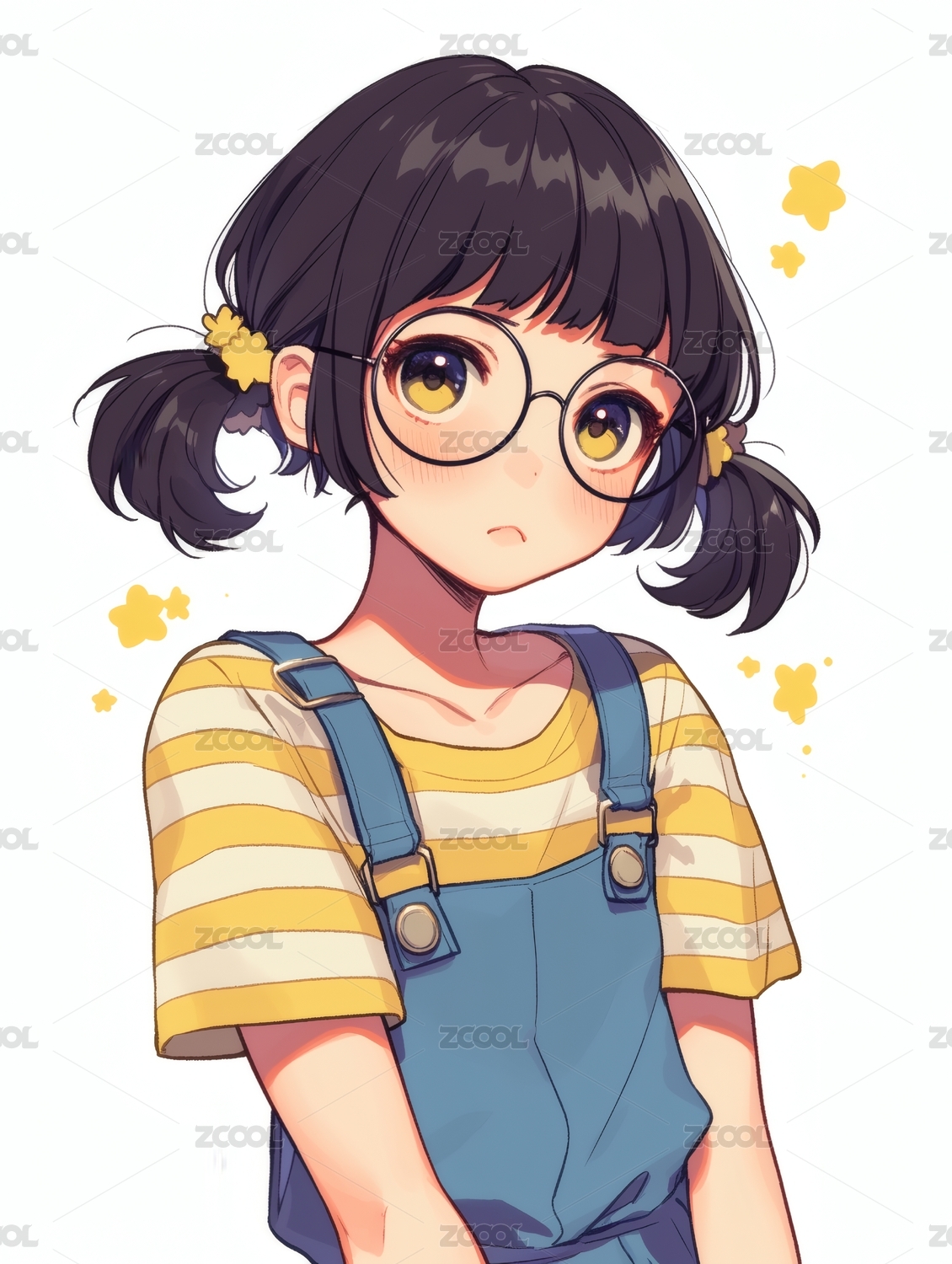 女孩黄衫戴眼镜可爱卡通插画