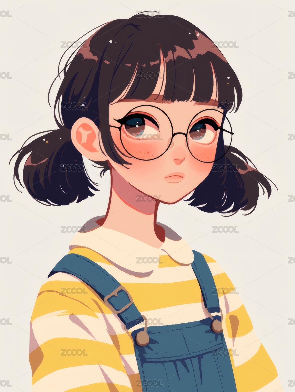 可爱女孩圆框眼镜俏皮日常