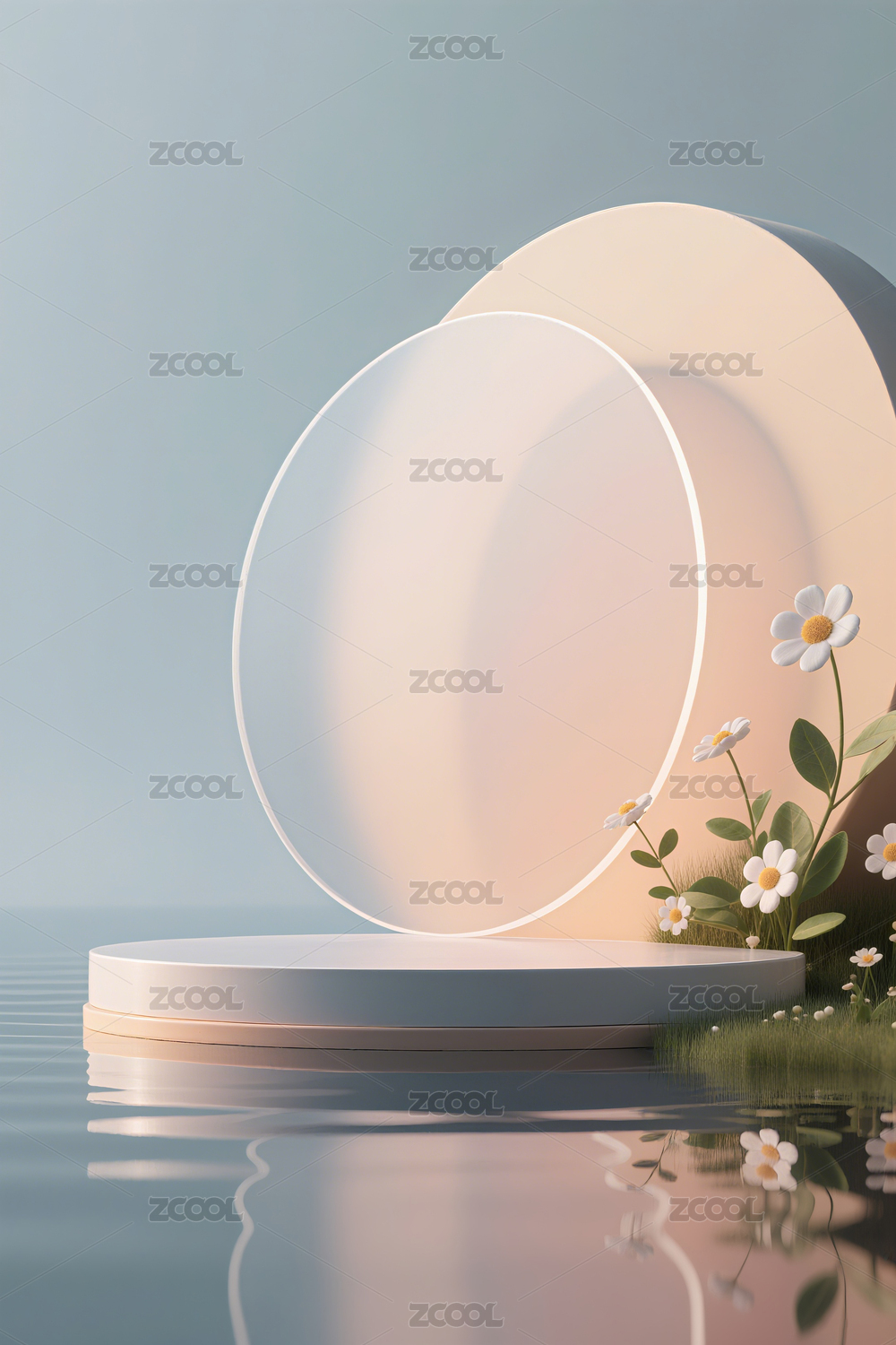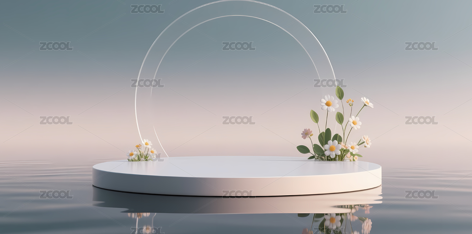 圆形平台上的花朵与透明圆环