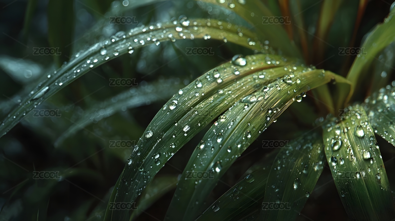 水滴绿叶特写
