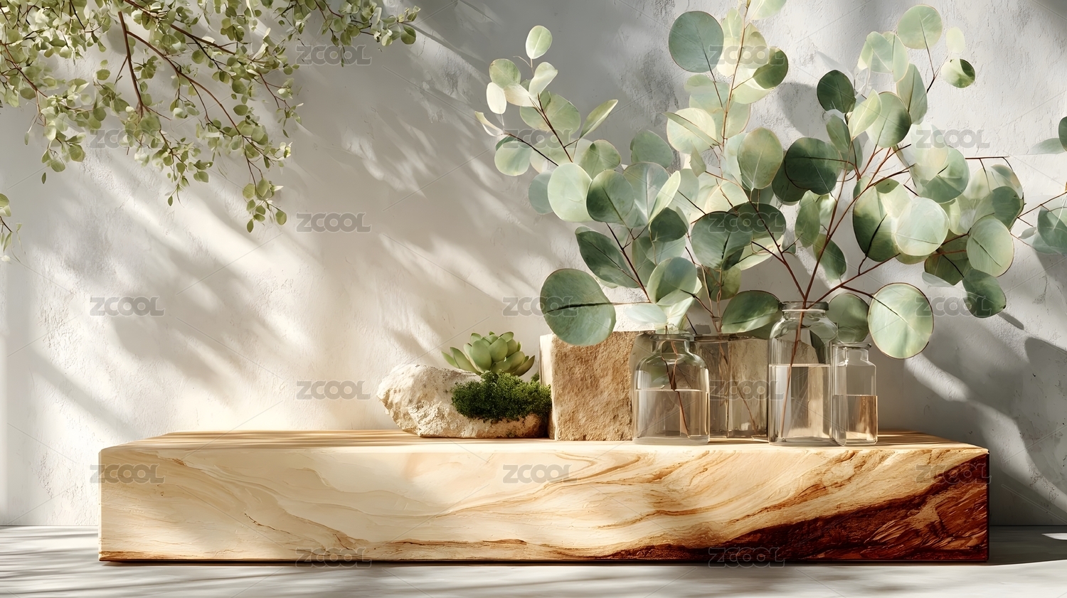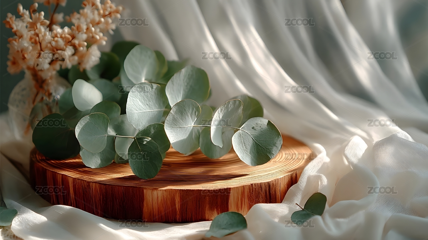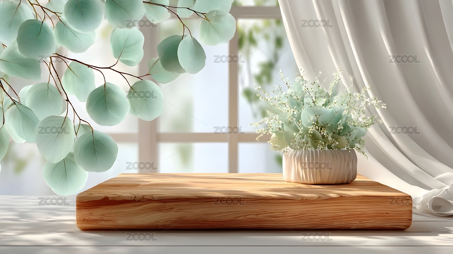 背景,植物,叶子,木盒,尤加利,窗帘,阳光,木质,光影,白色