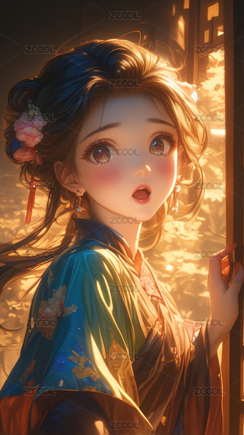 手绘动漫唯美的中国古装少女插画
