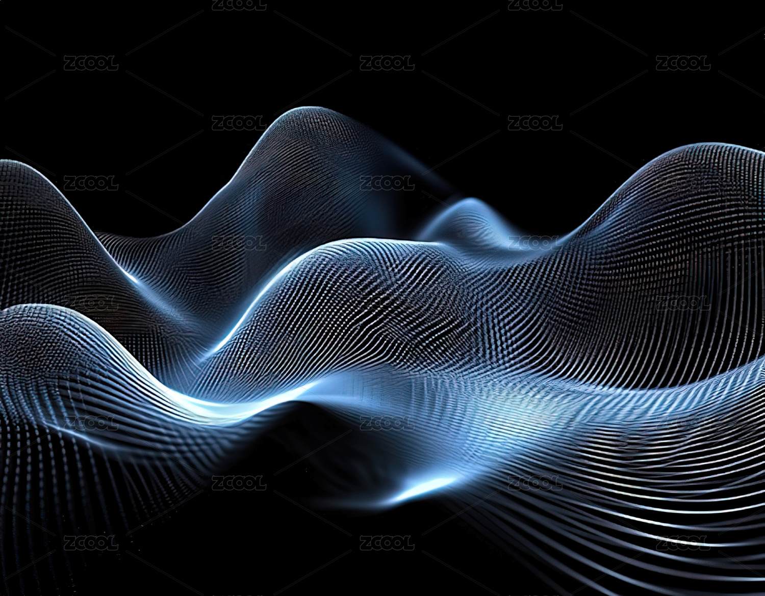 蓝色光波流动抽象图案