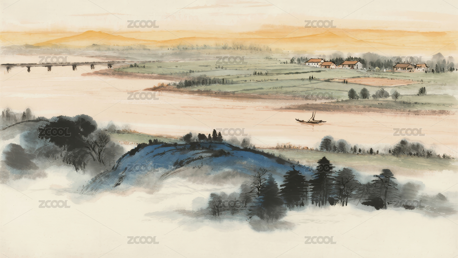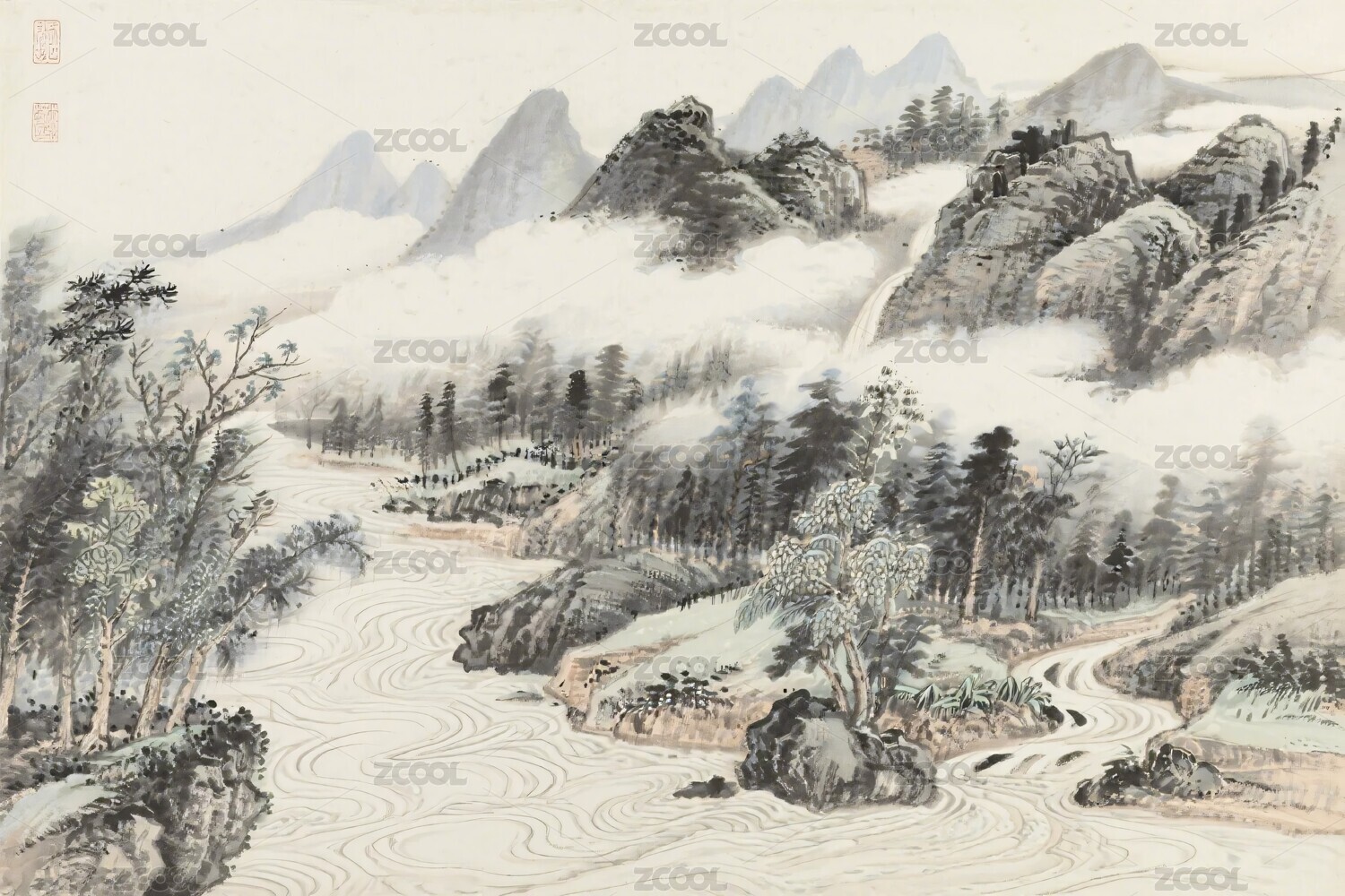 自然, 风景, 和谐, 树木, 宁静,山水, 河流, 云雾, 水墨, 绿植