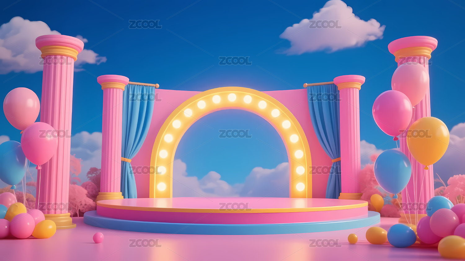 3d卡通舞台窗帘聚光灯愚人节舞台背景