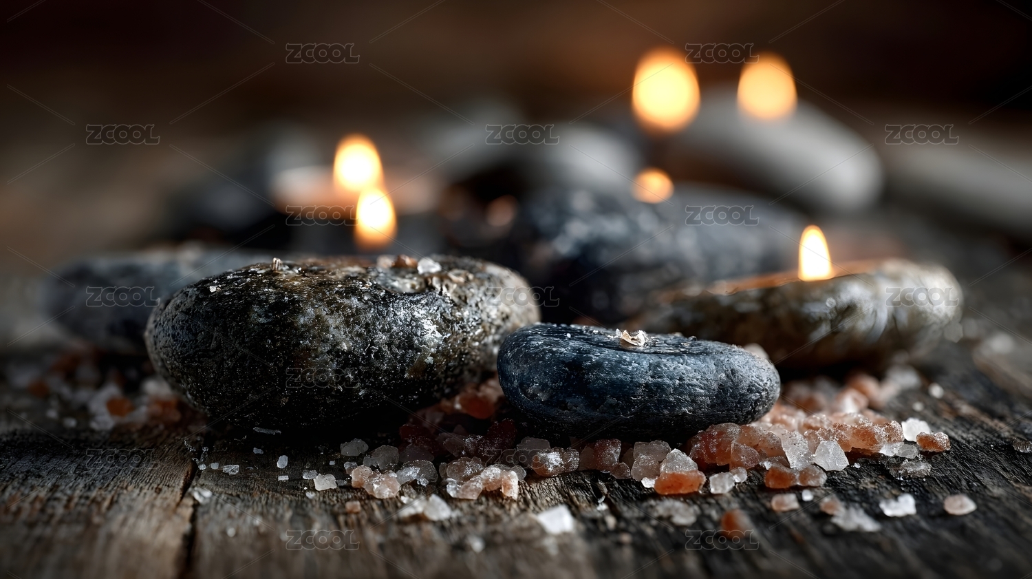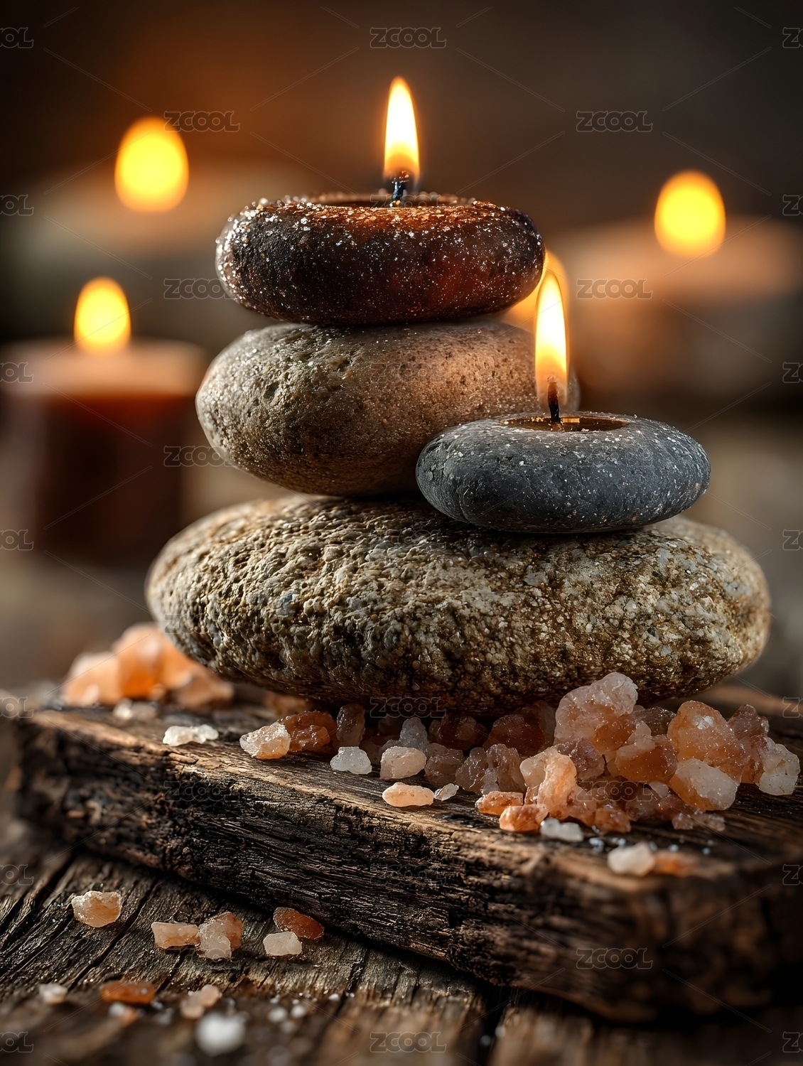 蜡烛与盐石的宁静氛围