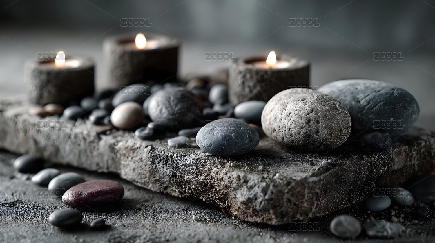 静谧石块与蜡烛组合