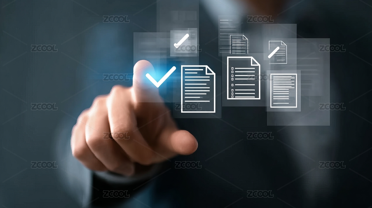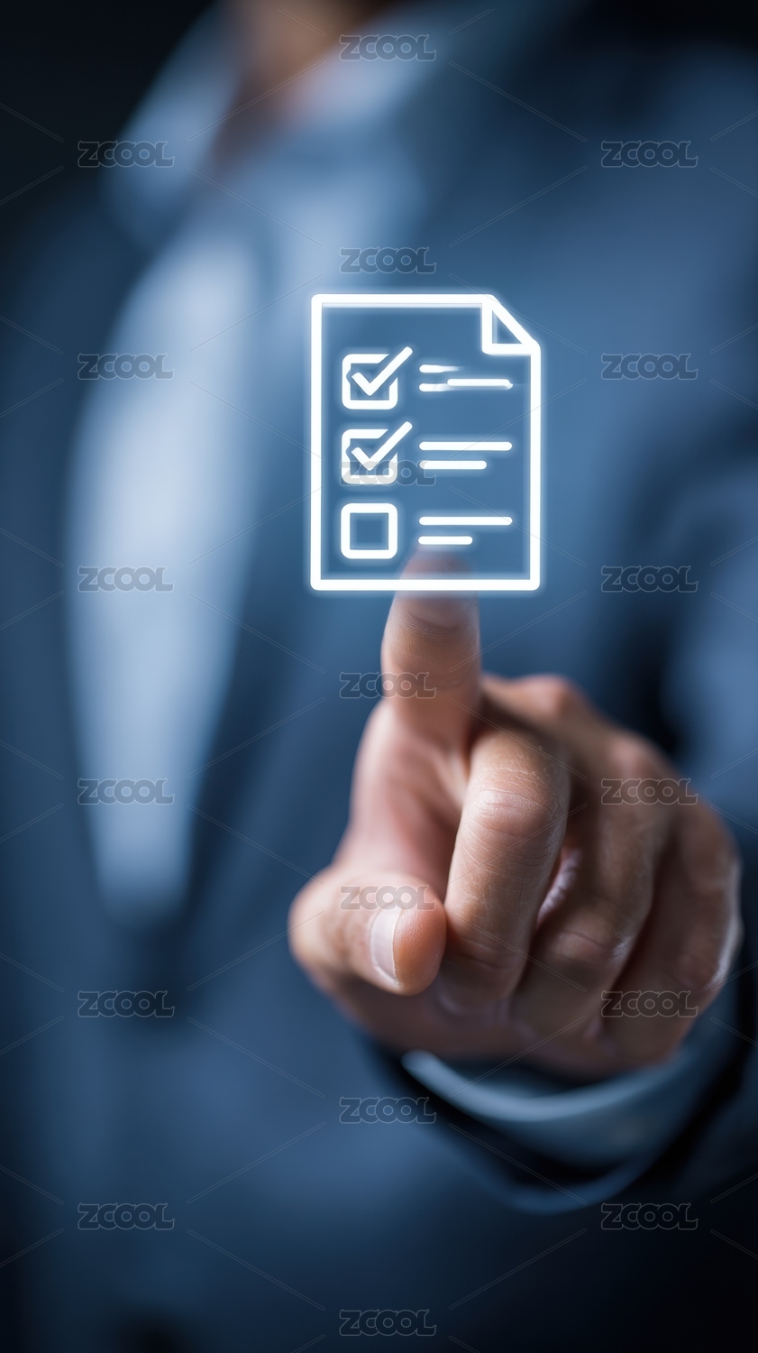 商务人士手指触摸数字平板电脑屏幕备忘录的