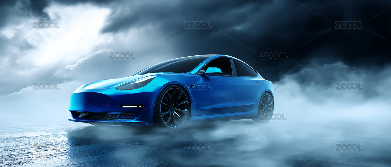 蓝色汽车,电动汽车,流线型设计,两厢车,黑色轮毂,透明车窗,简约外观,未来感,科技感,时尚