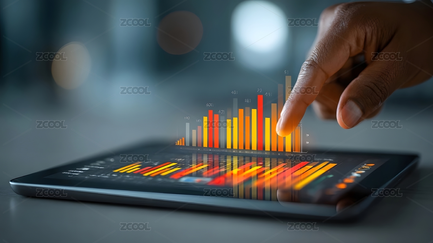 手指触摸屏幕上的数据图表