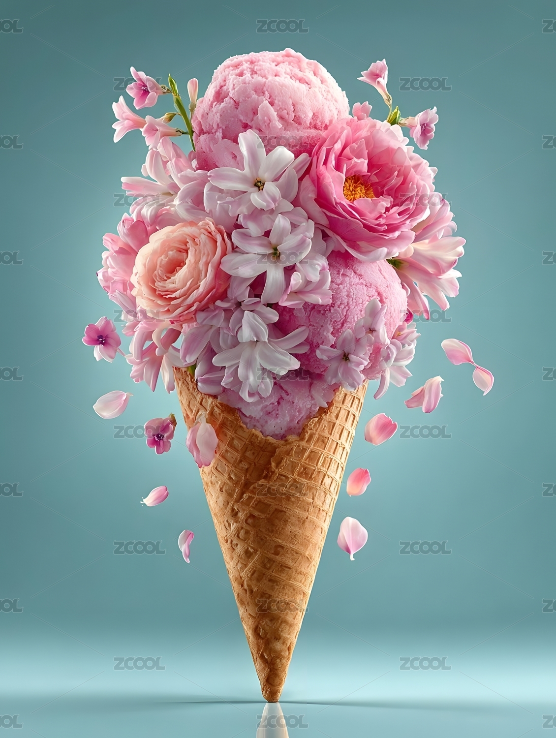 薄荷,冰淇淋,甜点,花朵,玫瑰,雏菊,鲜花,花束,甜筒,紫色