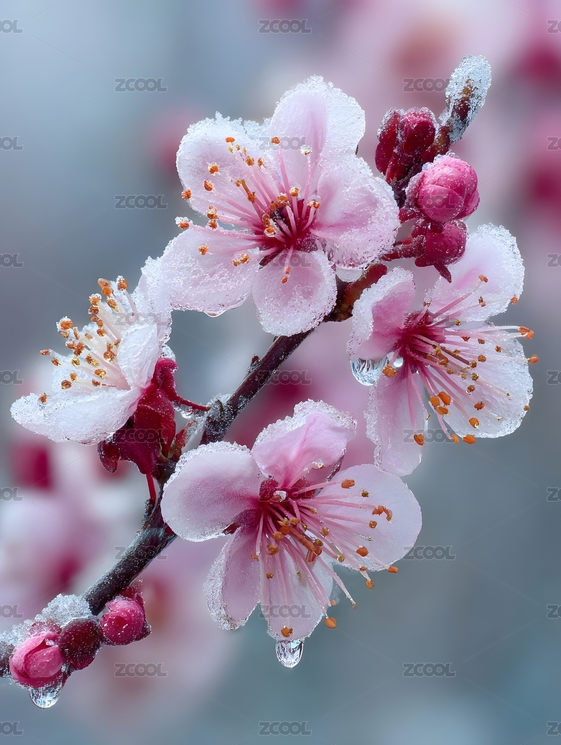 冰霜樱花绽放