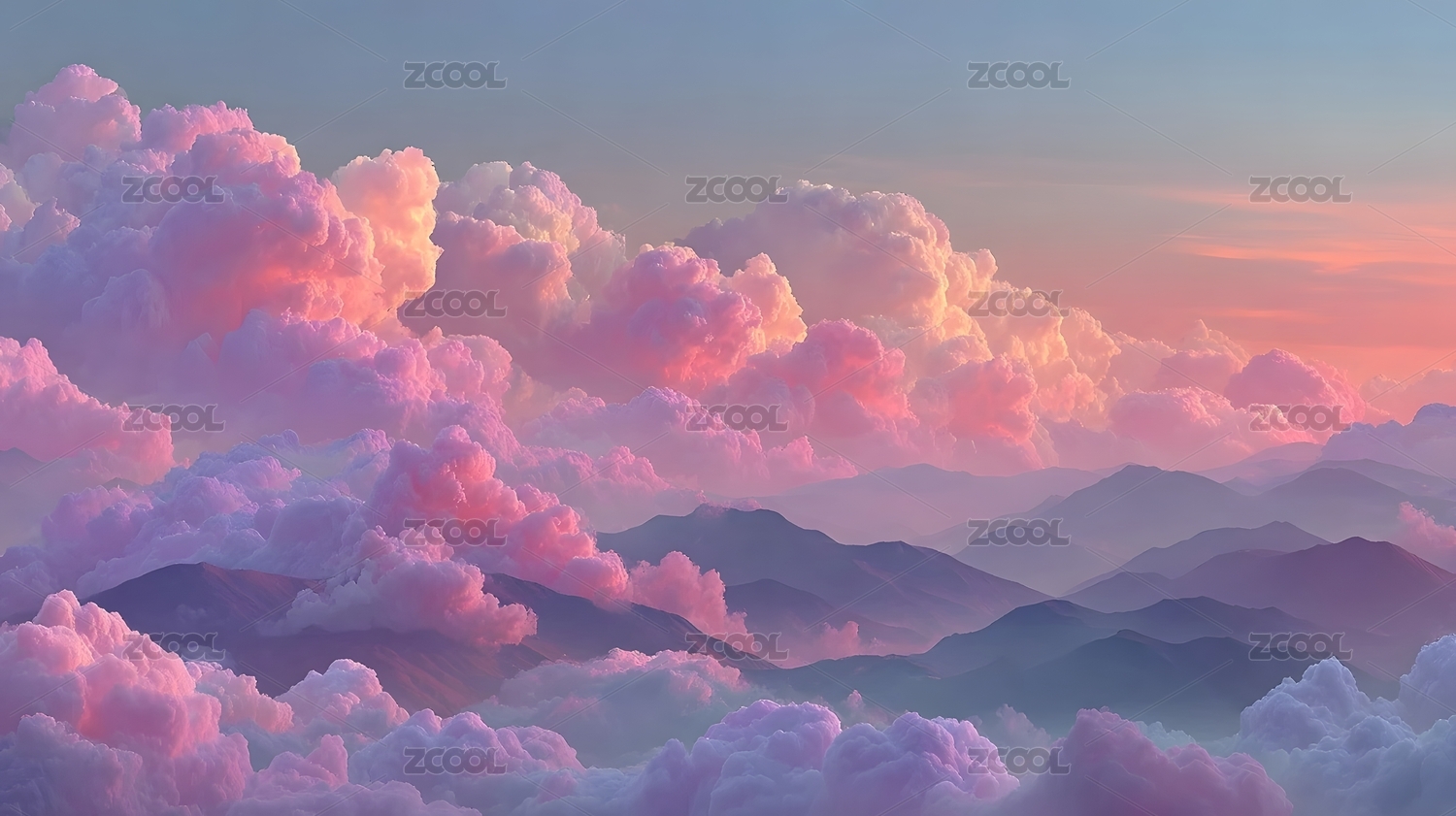 粉红云海日落天空