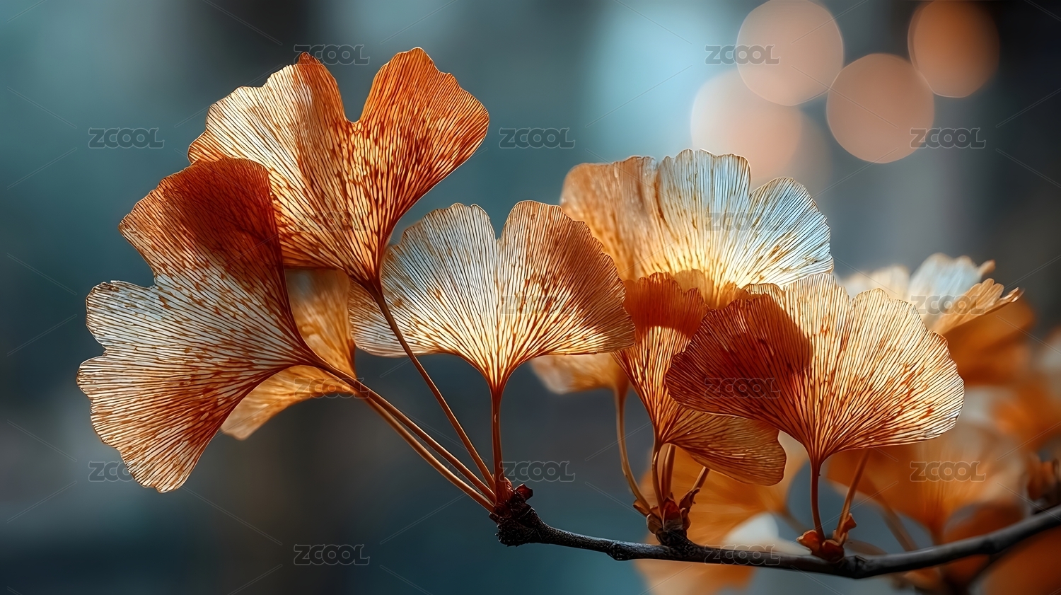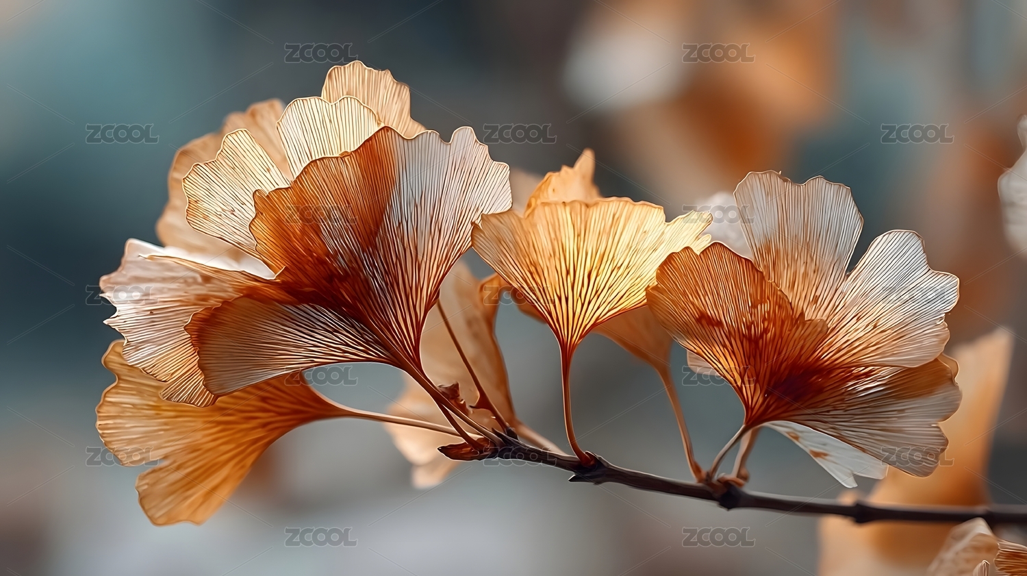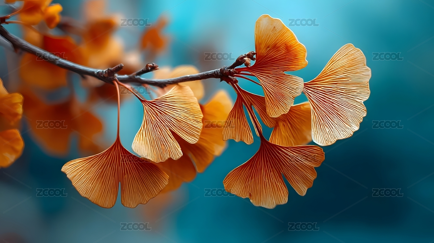 银杏,叶子,枝条,秋天,纹理,褐色,自然,植物,叶脉,扇形