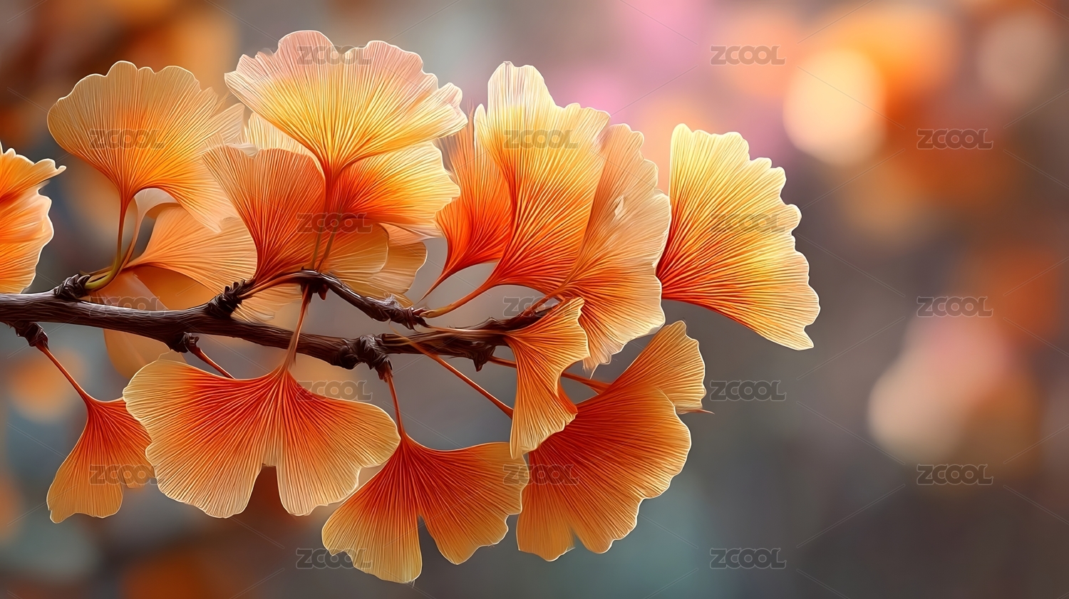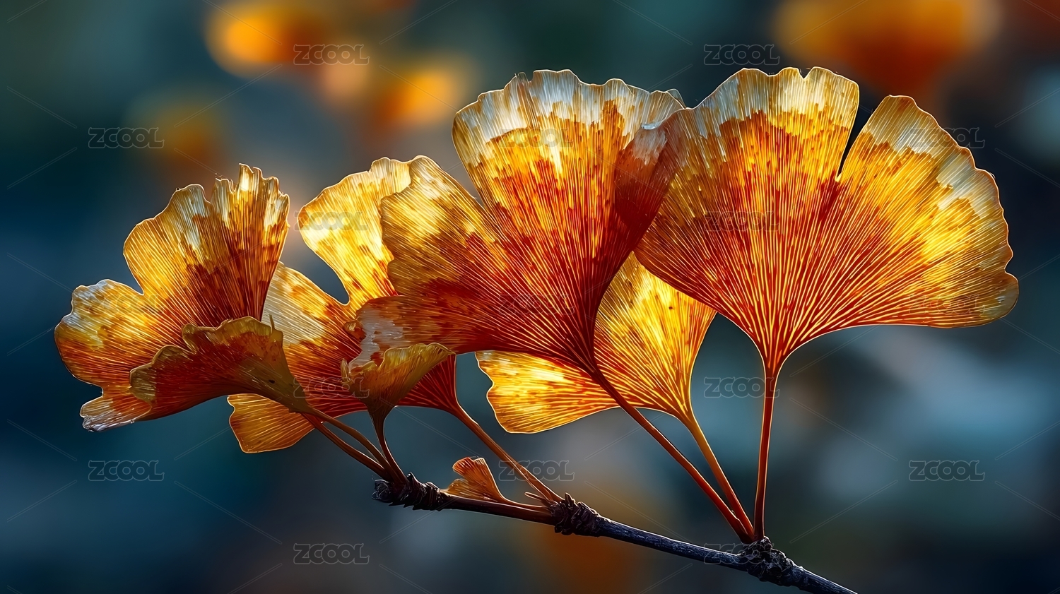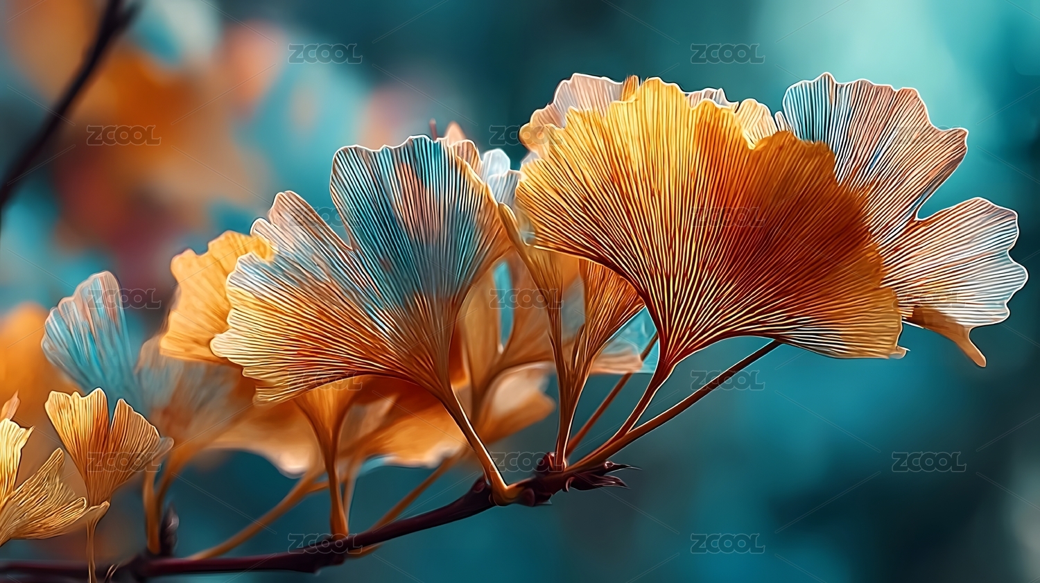 银杏,叶子,枝条,秋天,纹理,褐色,自然,植物,叶脉,扇形