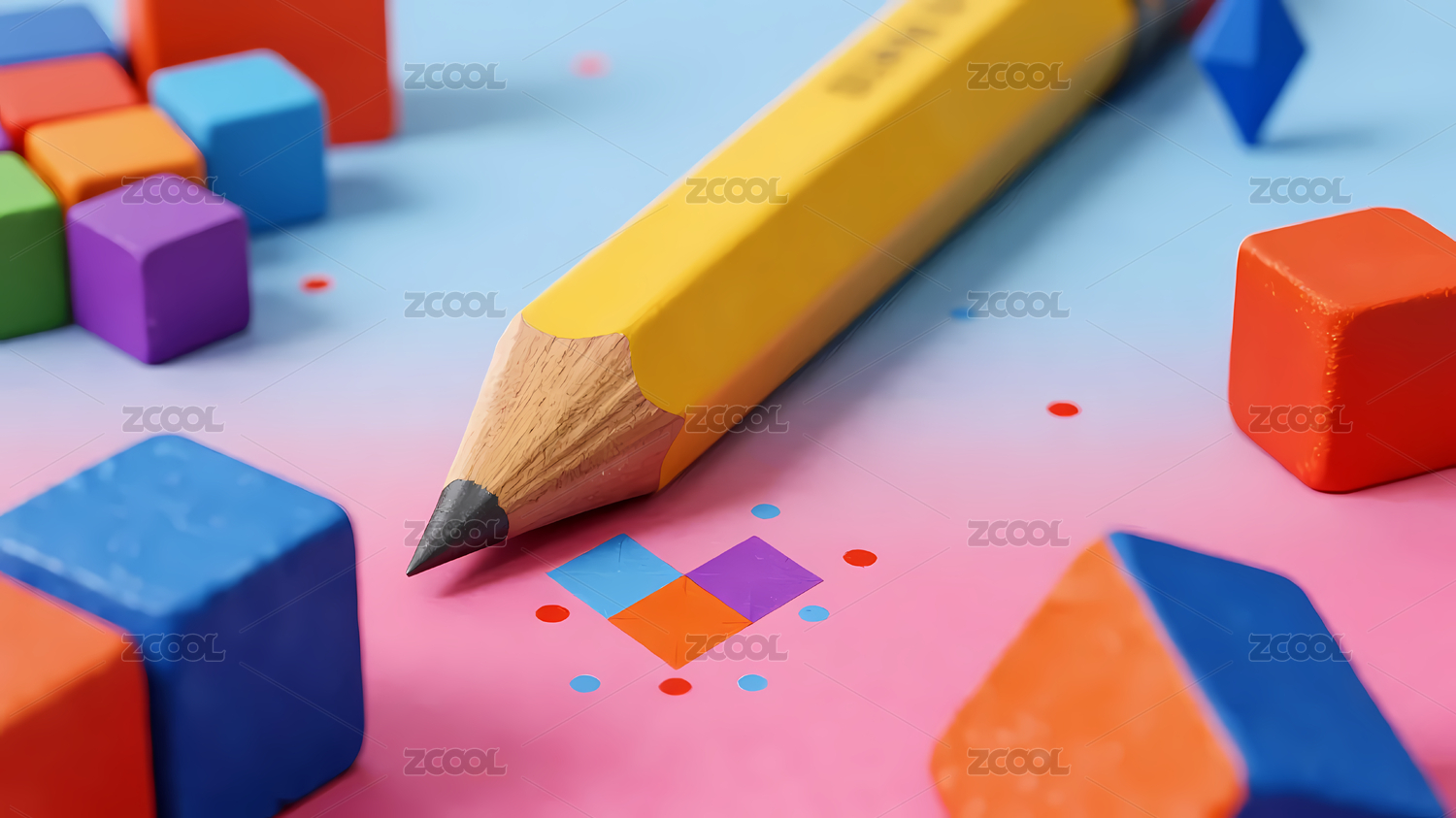 多色铅笔与立方块