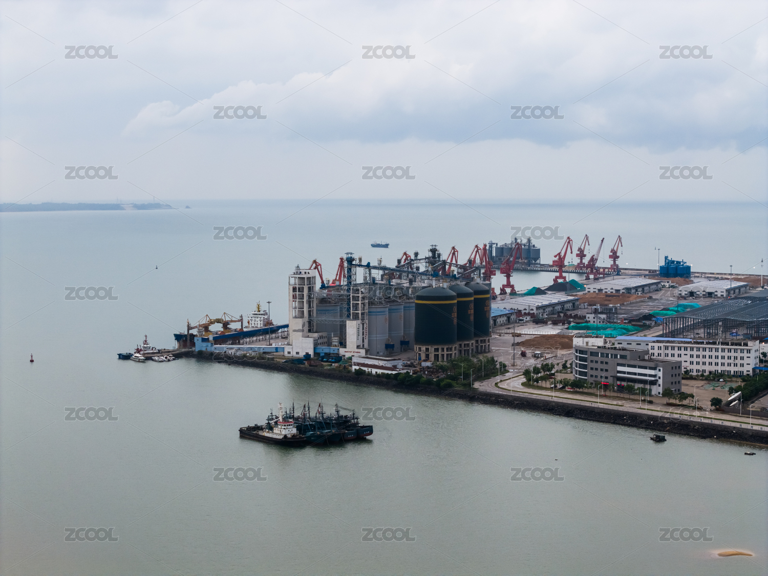 福建厦门海翔码头沿海港口与湿地景观航拍图