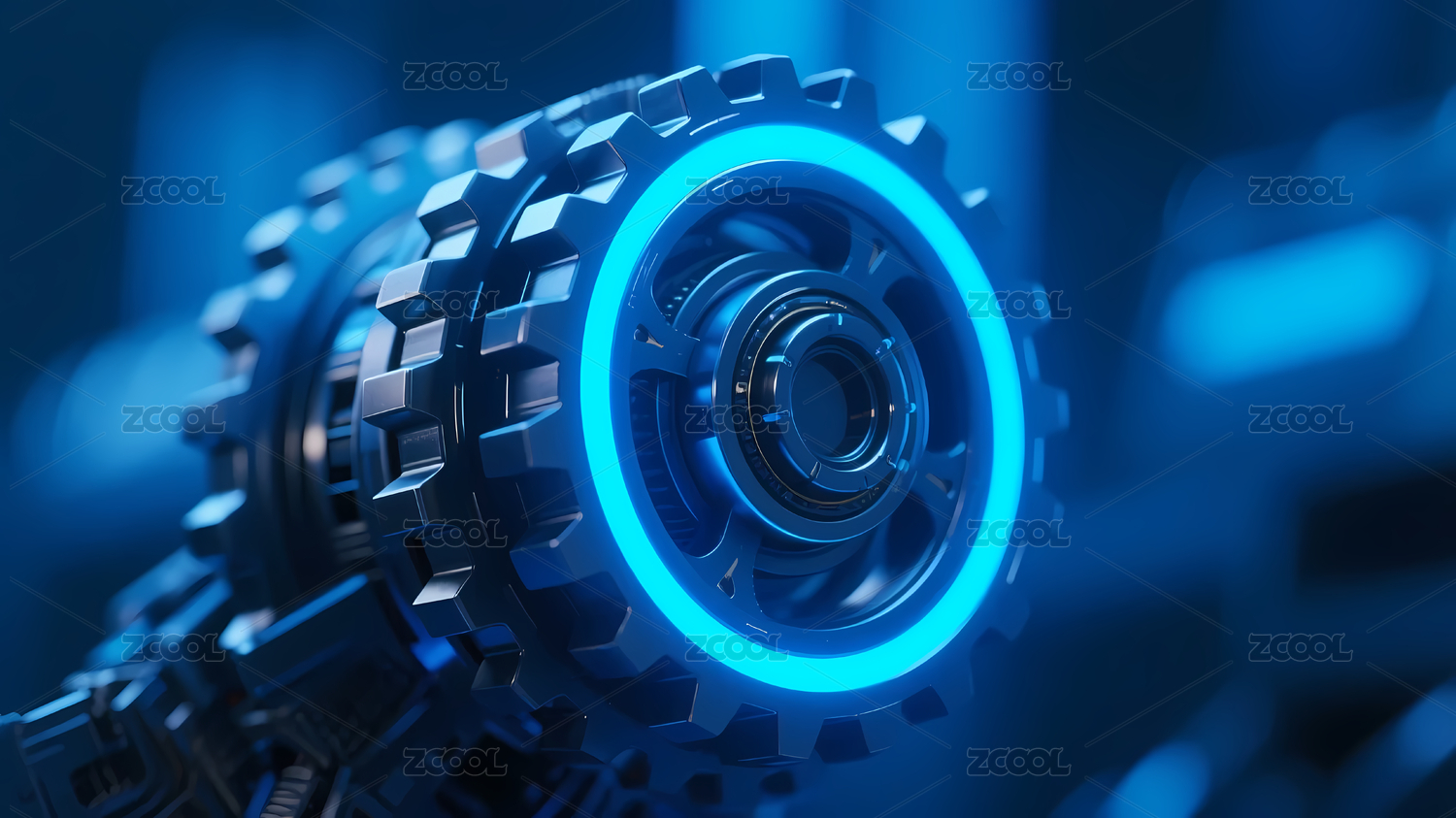 蓝色机械齿轮特写画面