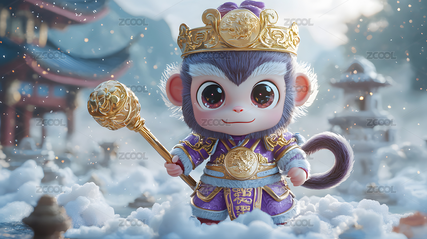 3D卡通立体猴子中国风角色形象插画