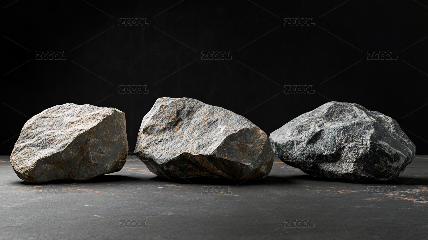 简约灰色平台上的岩石展示