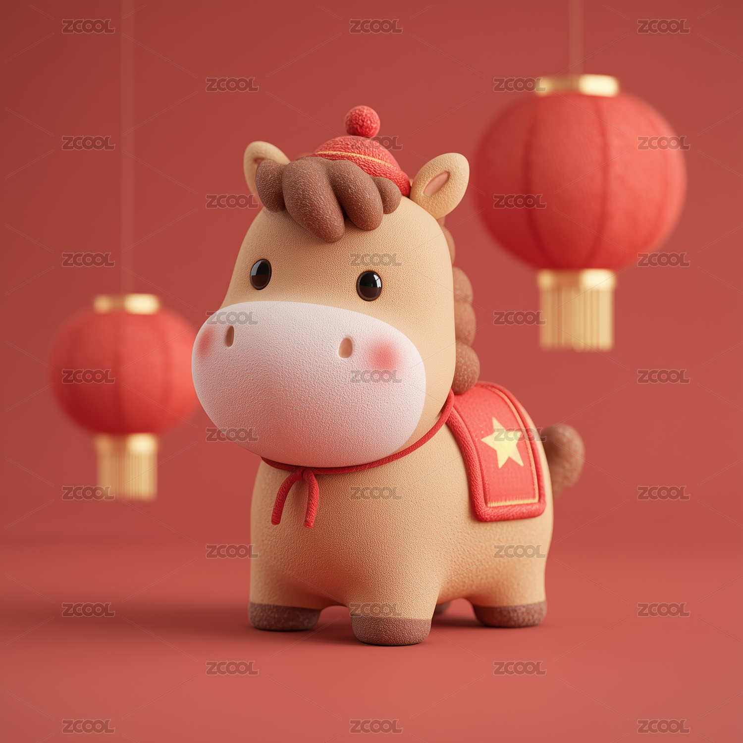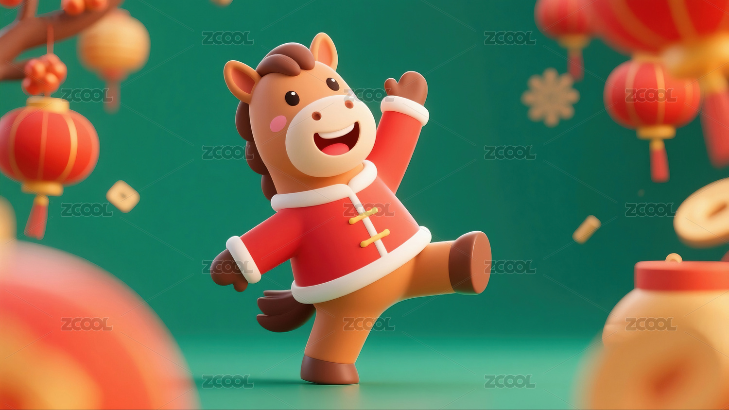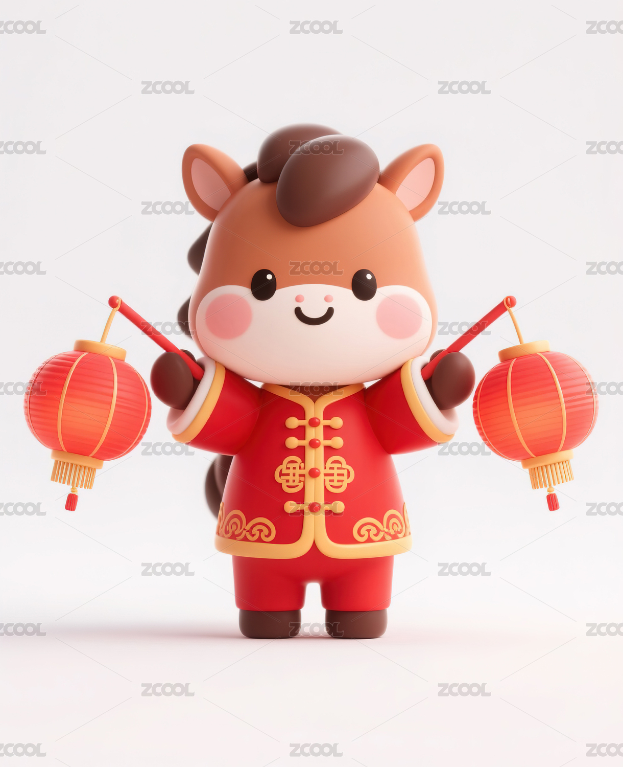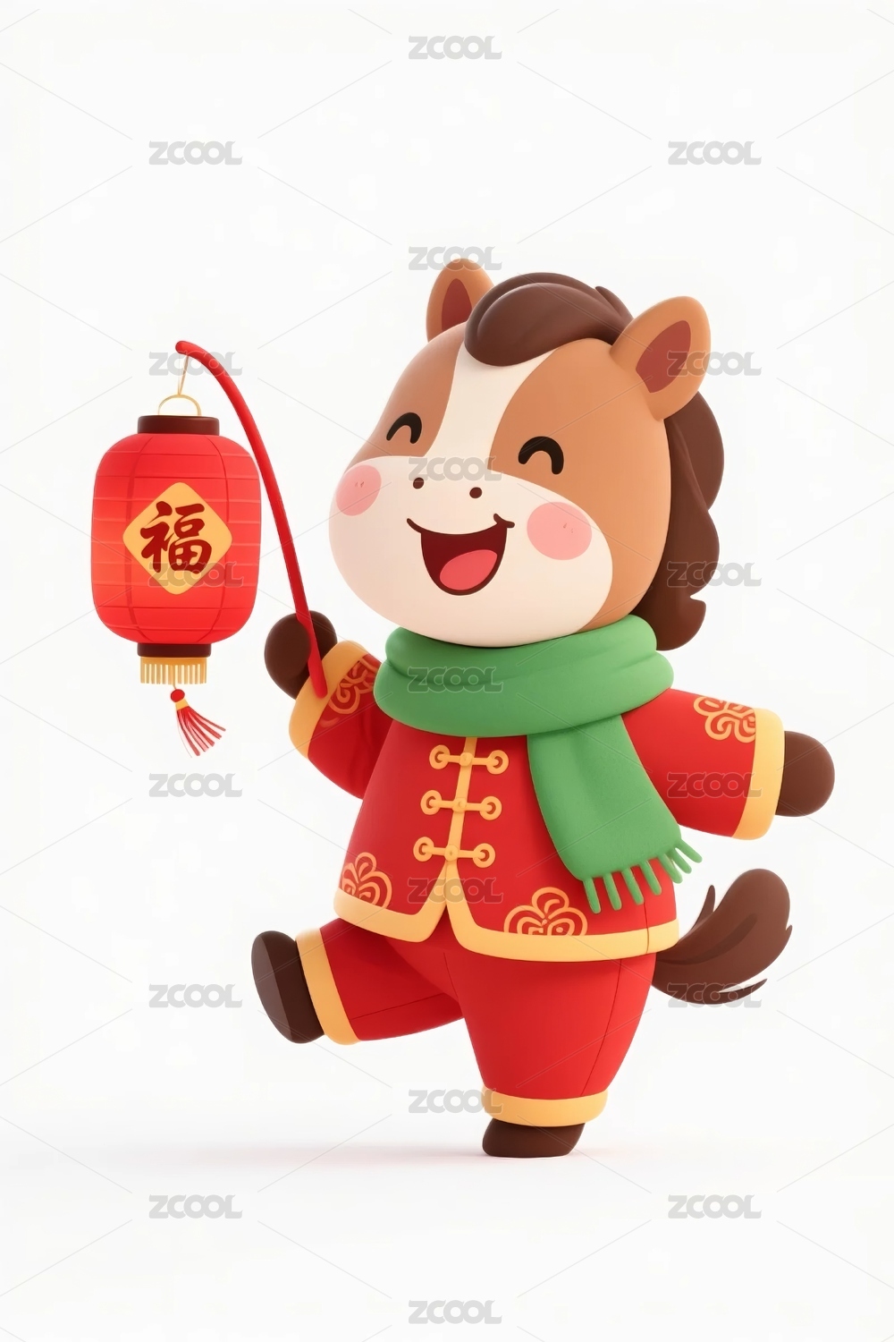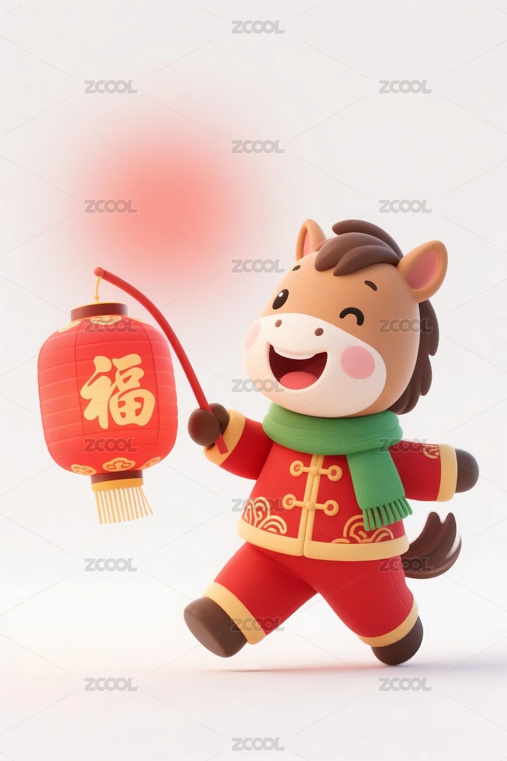 生肖马一只手拿着一个灯笼庆祝春节3d插画
