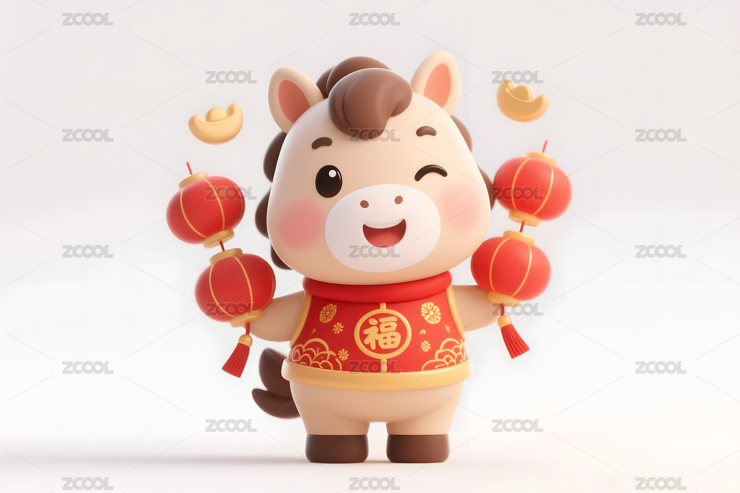 春联,对联,3d,渲染,三维,建模,模型,插画,马年,春节