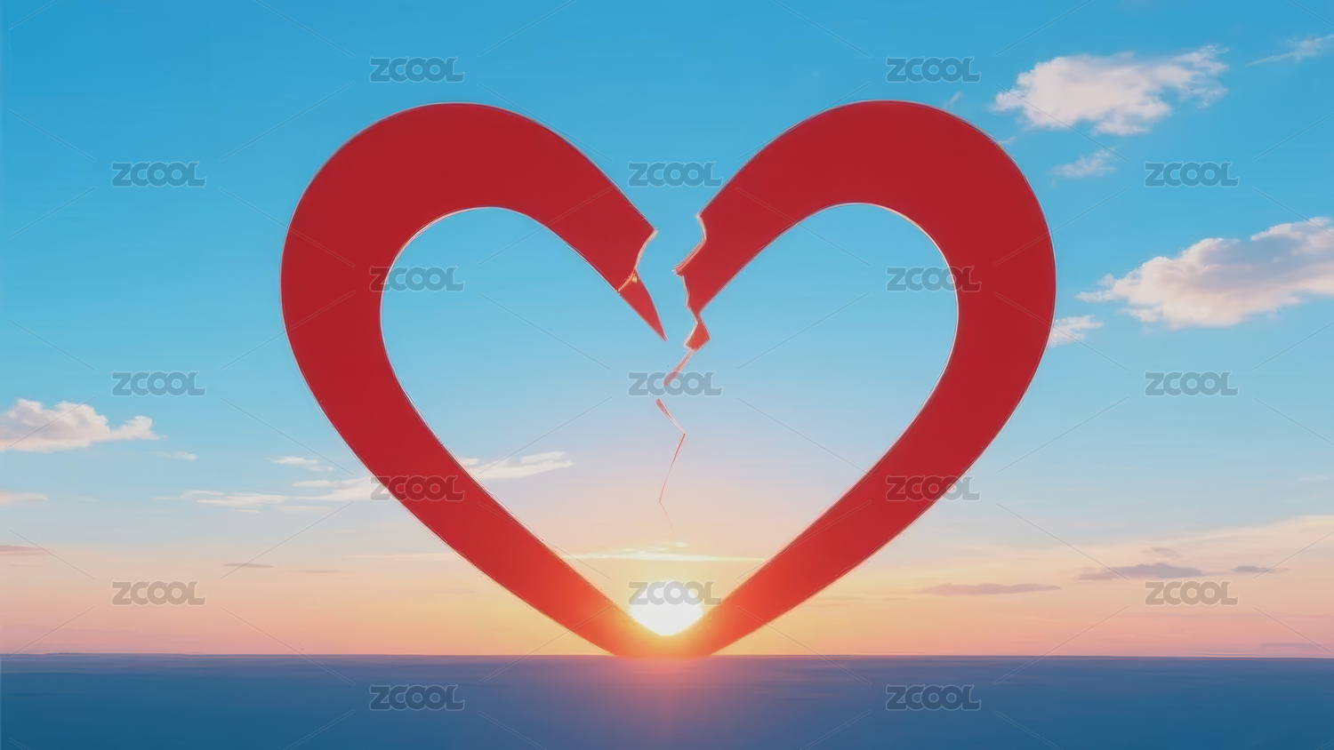 红色心形物体中间裂开一道缝隙
