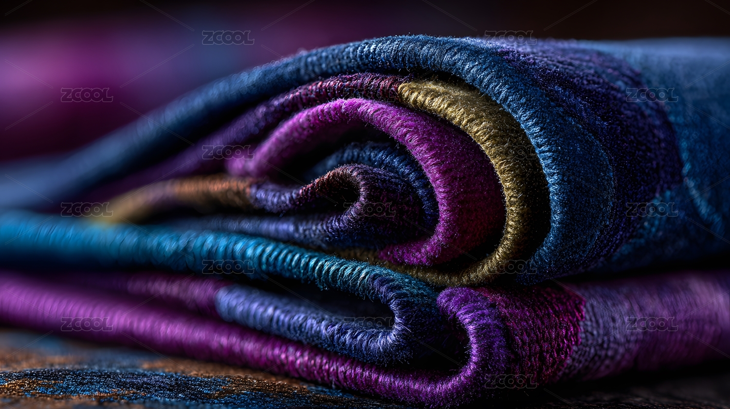 卷起的丝绒布料 渐变紫色光影 柔和氛围