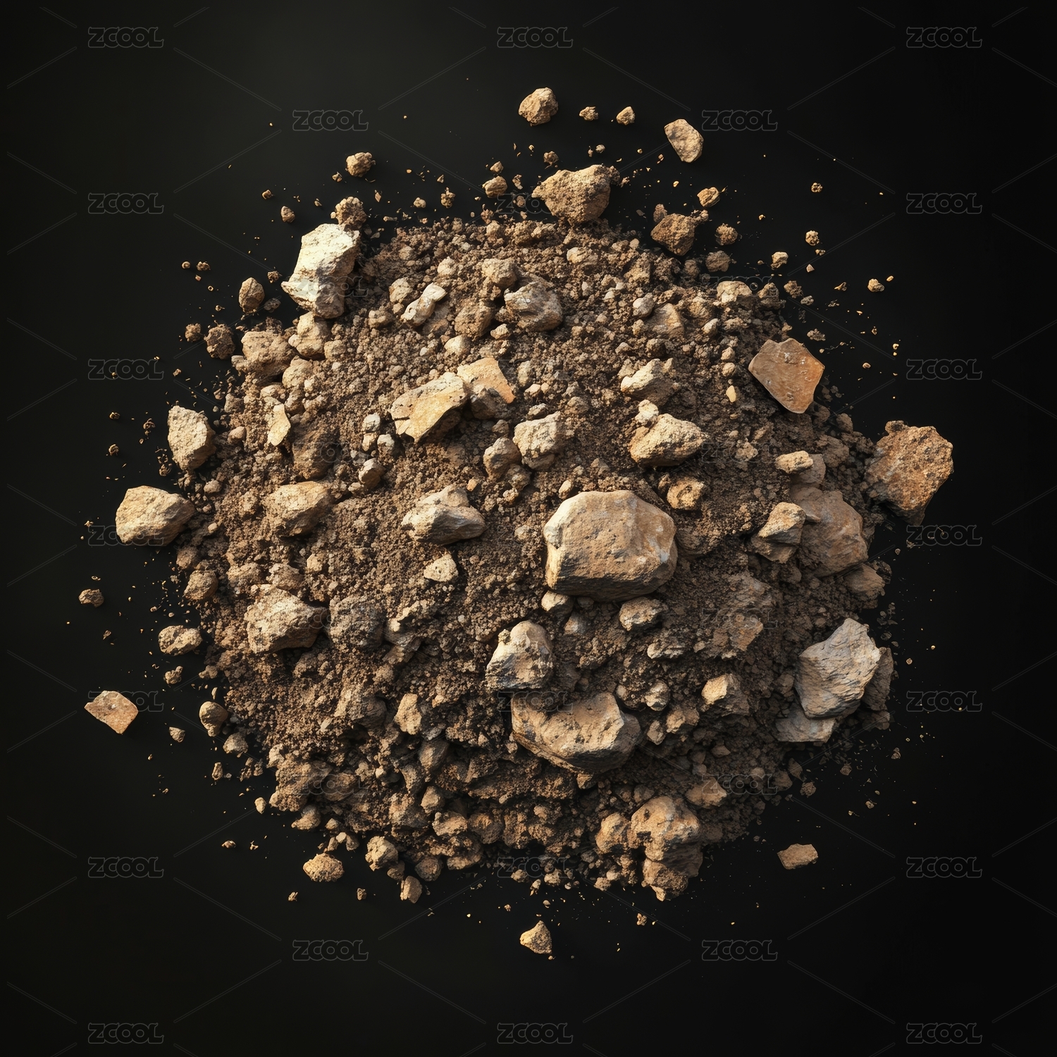 黑色背景上的碎石堆