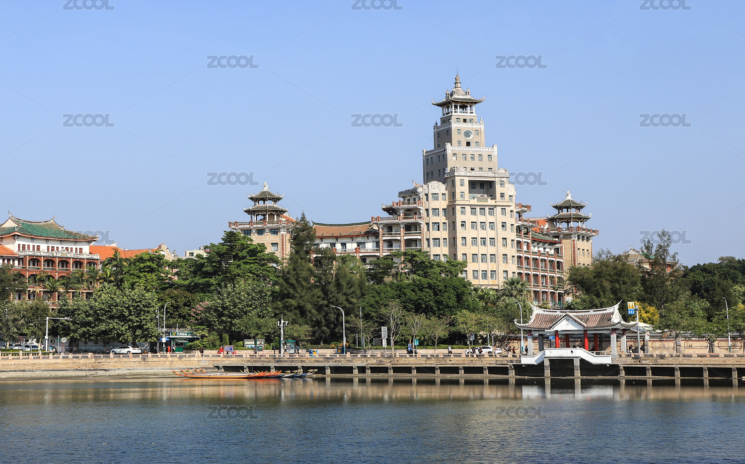厦门市集美学村龙舟池里及岸边南侨楼群建筑