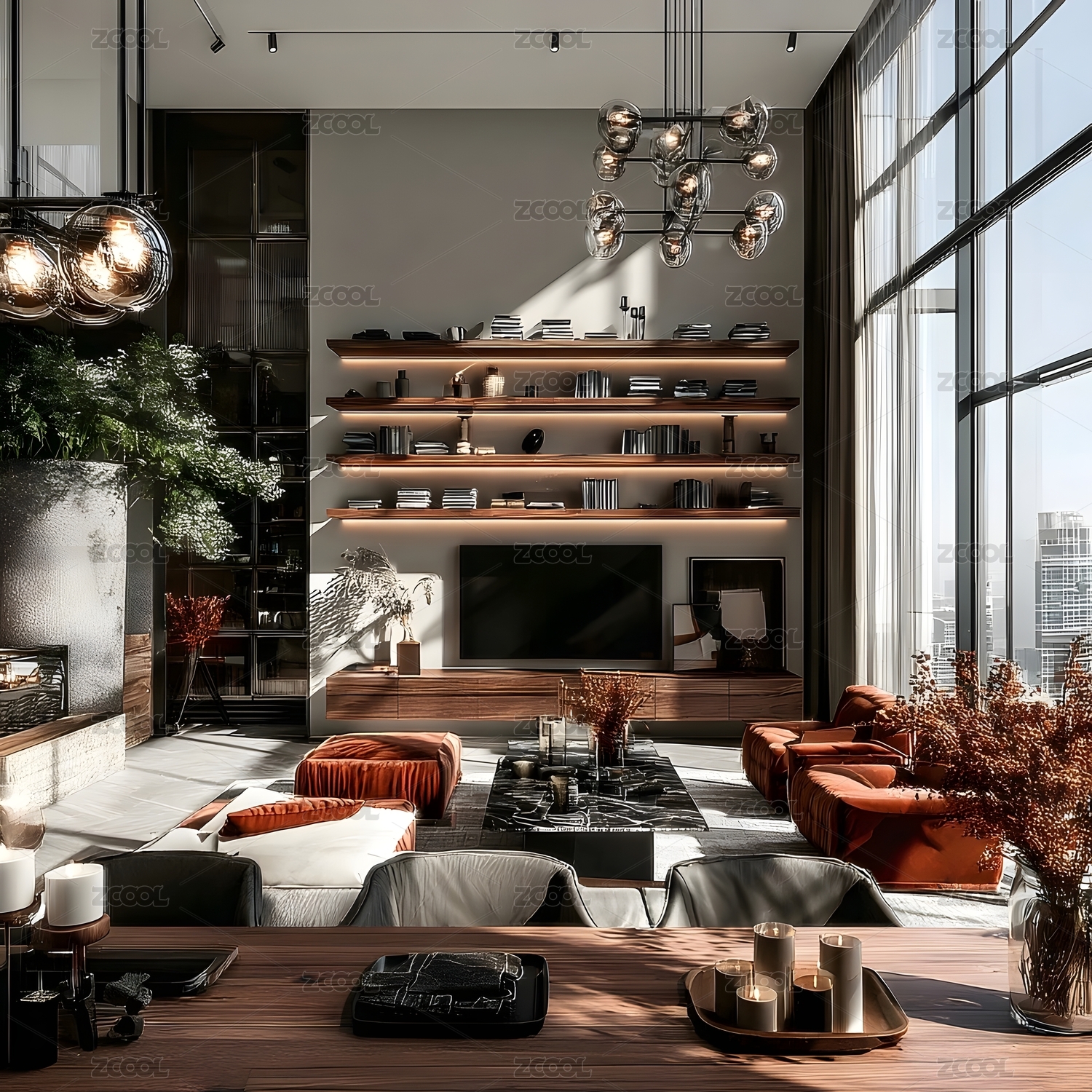植物,现代,装饰,简约,花朵,窗户,灯,绿叶,室内,盆栽