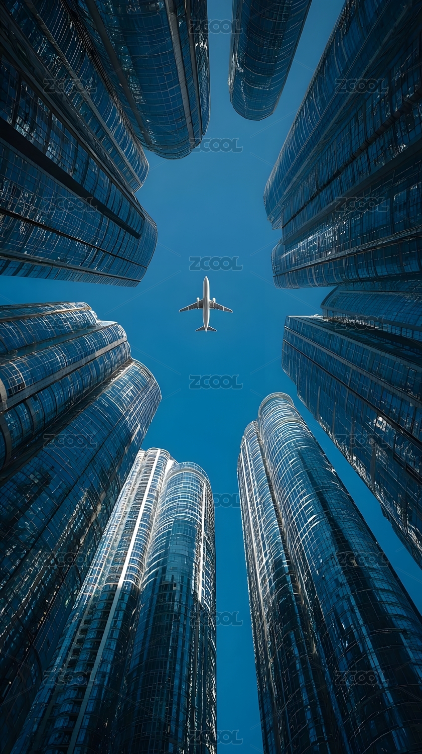 线条,天空,窗户,现代,结构,建筑,城市,中心,云雾,飞机