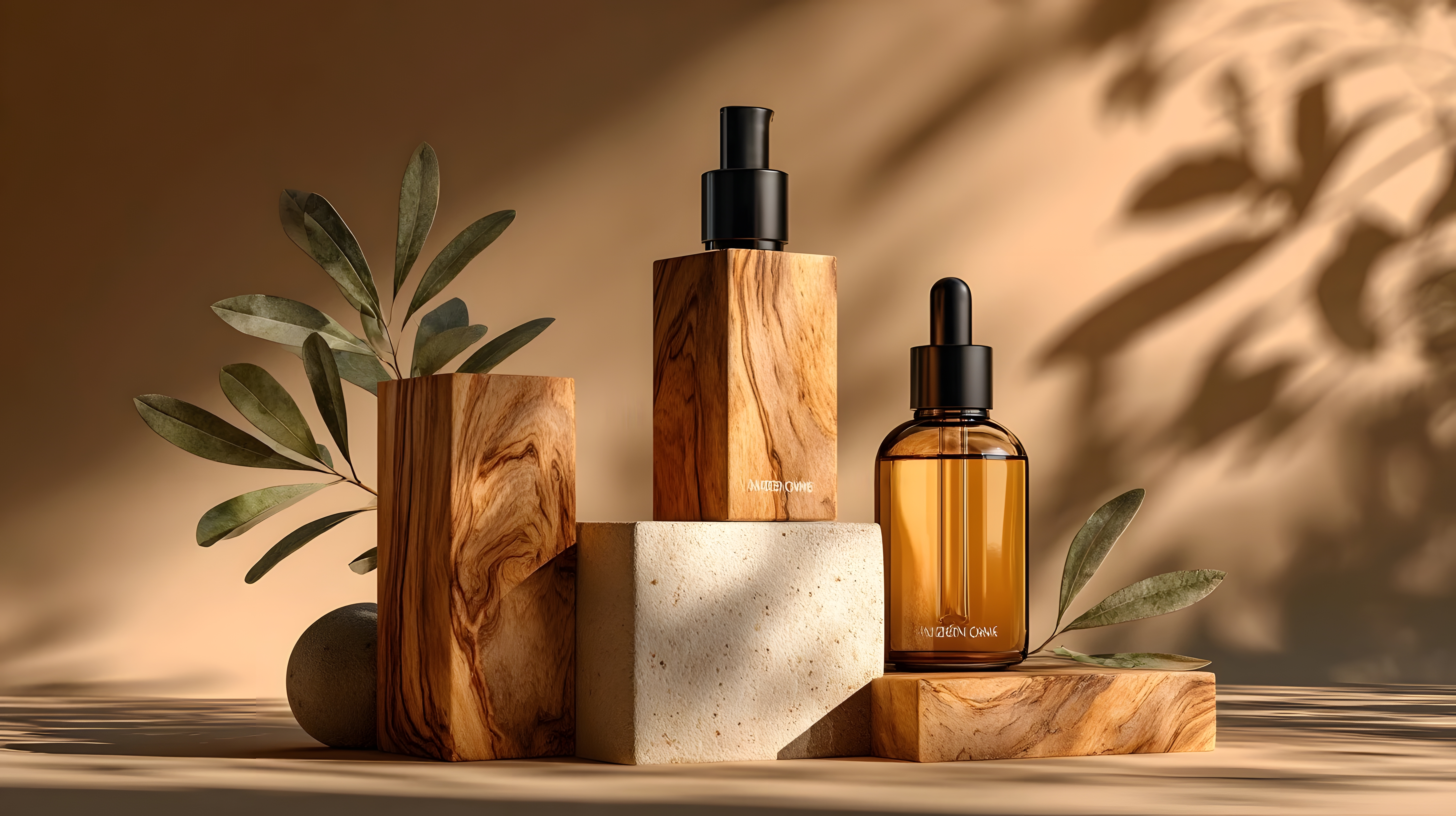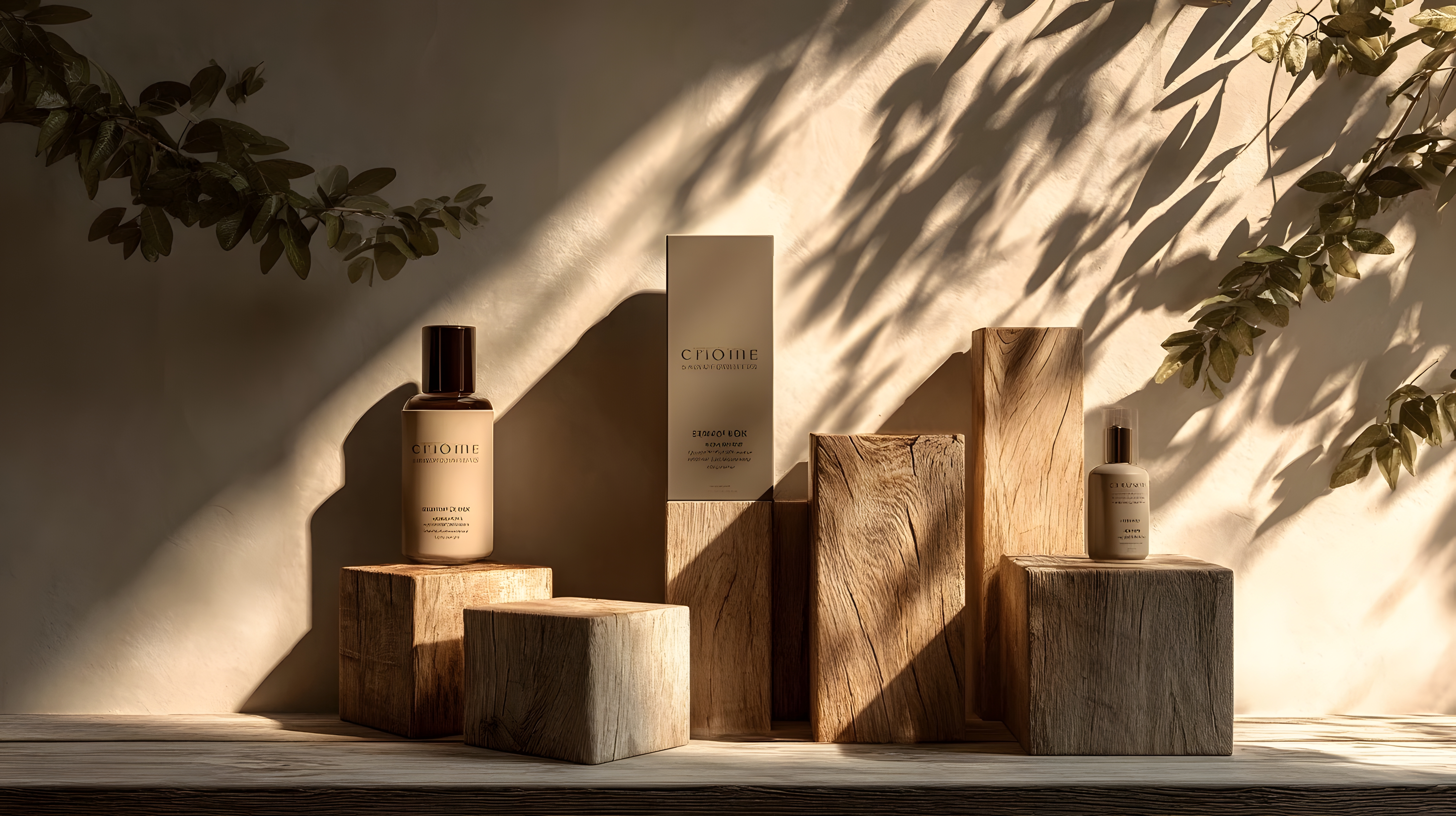 护肤品展示自然光影