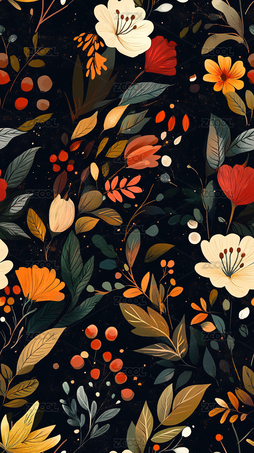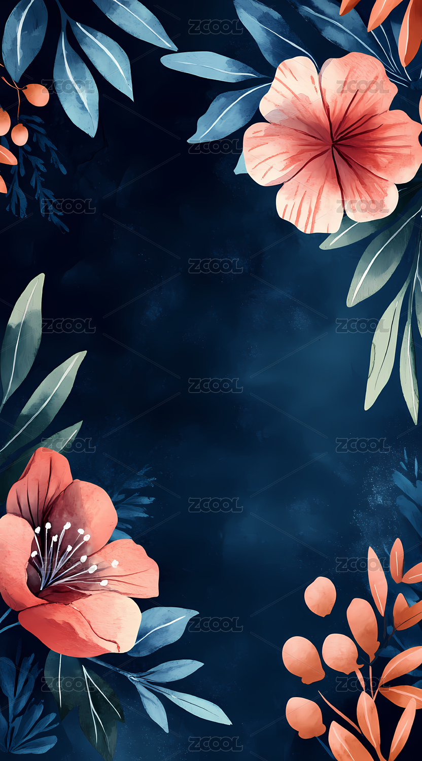 数码水彩花朵围绕边框植物抽象图形海报背景
