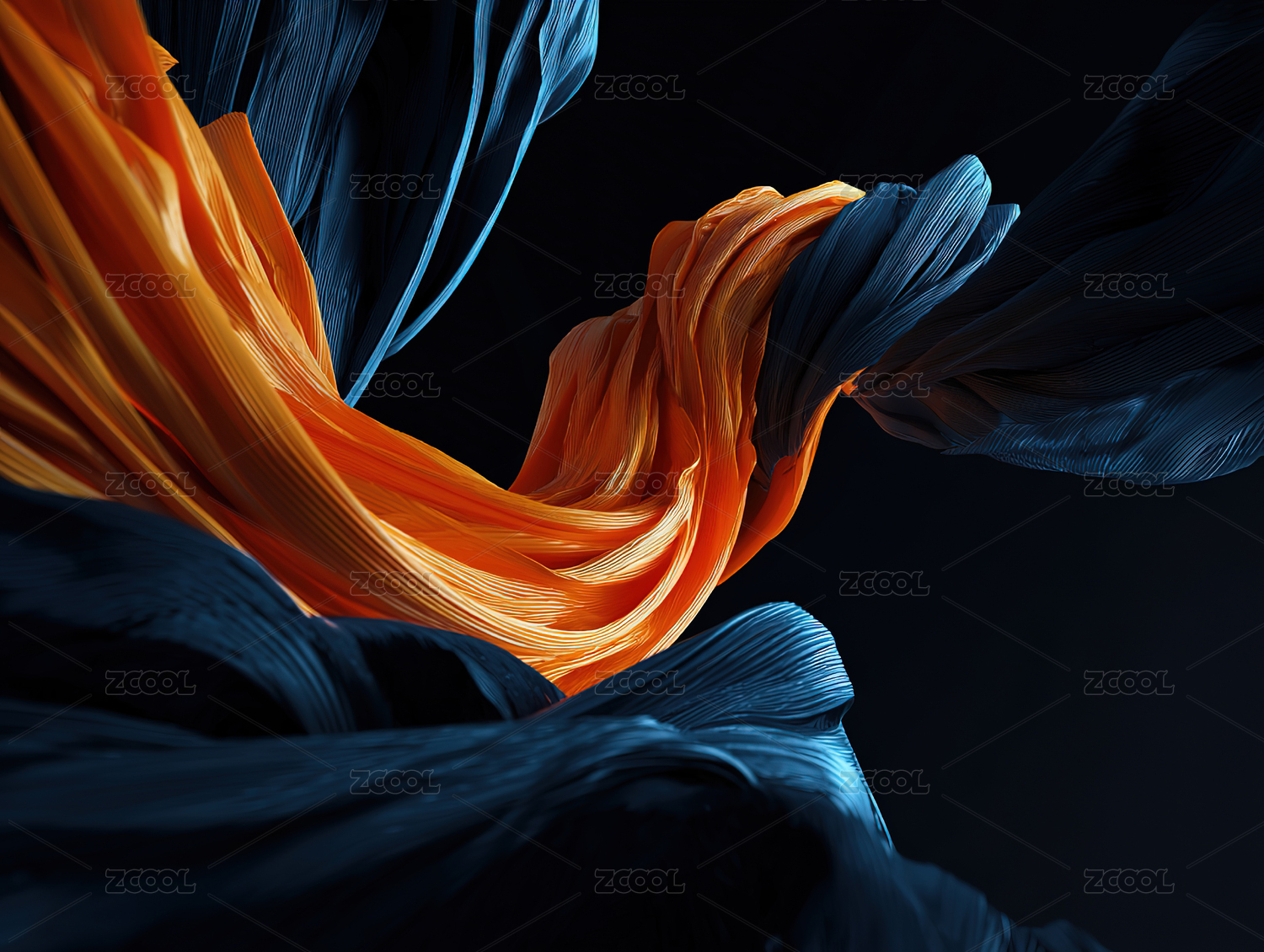 橙蓝交织的流动布料