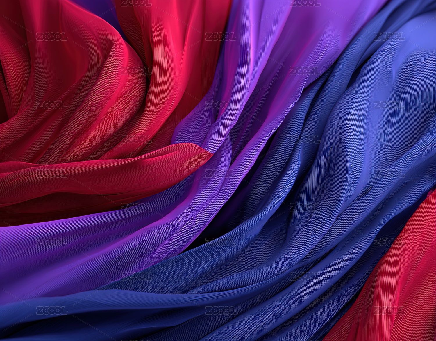红蓝紫绸缎褶皱特写