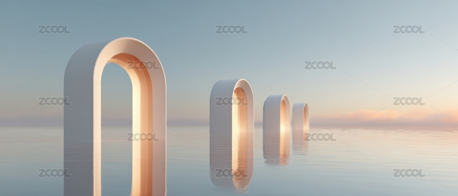 拱门,水面,建筑,极简,背景,艺术,创意,概念,AIGC,空间
