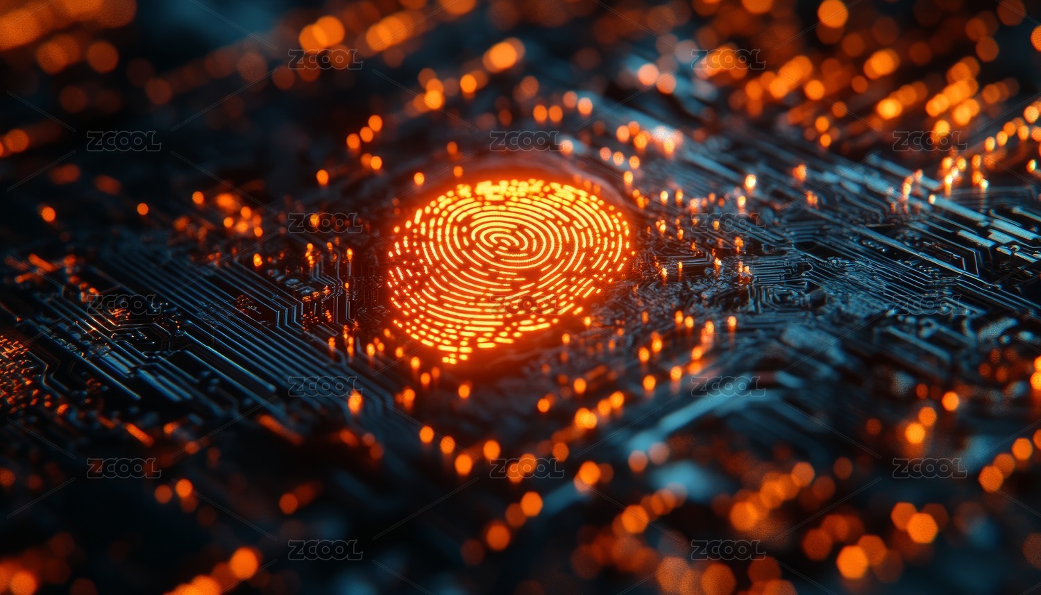 蓝色3D智能芯片电路板和生物指纹识别解锁