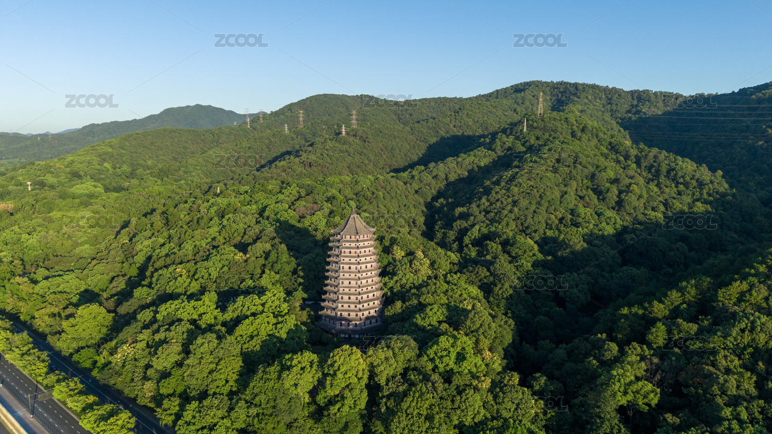 浙江省杭州市钱塘江六和塔晨曦日出航拍