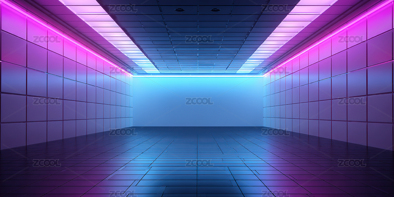 霓虹灯照亮的未来感空旷走廊