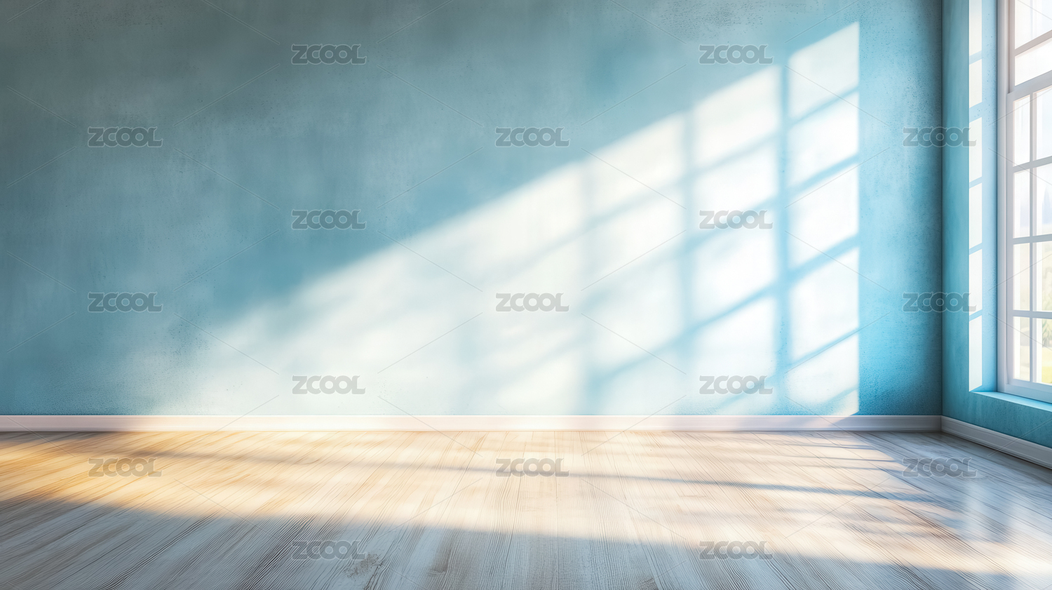 空旷蓝色房间与窗户光影