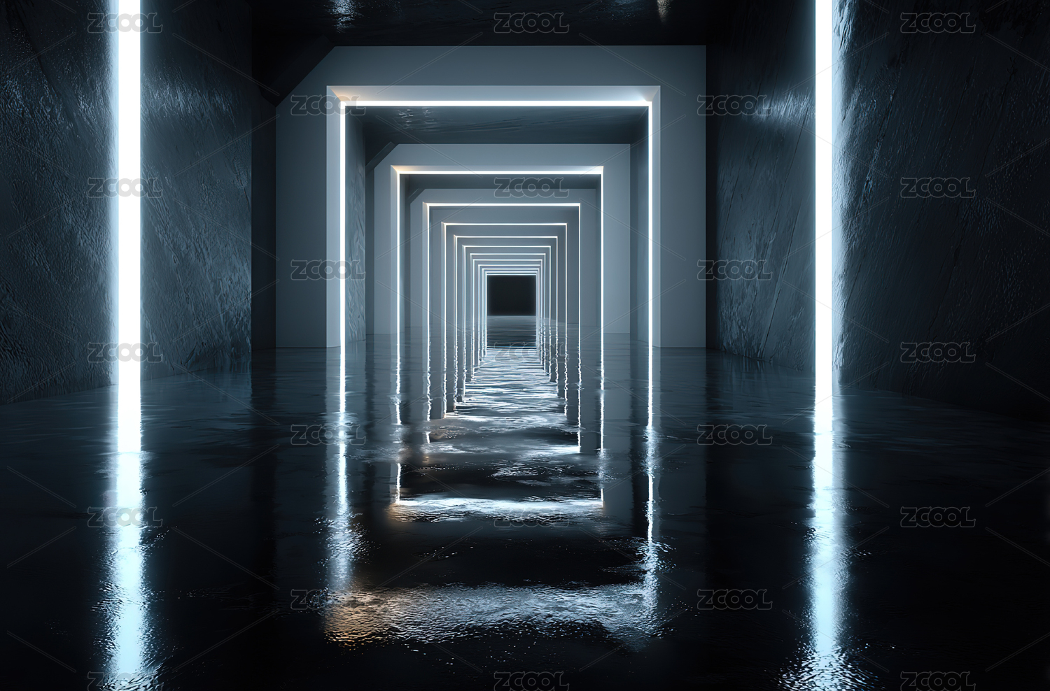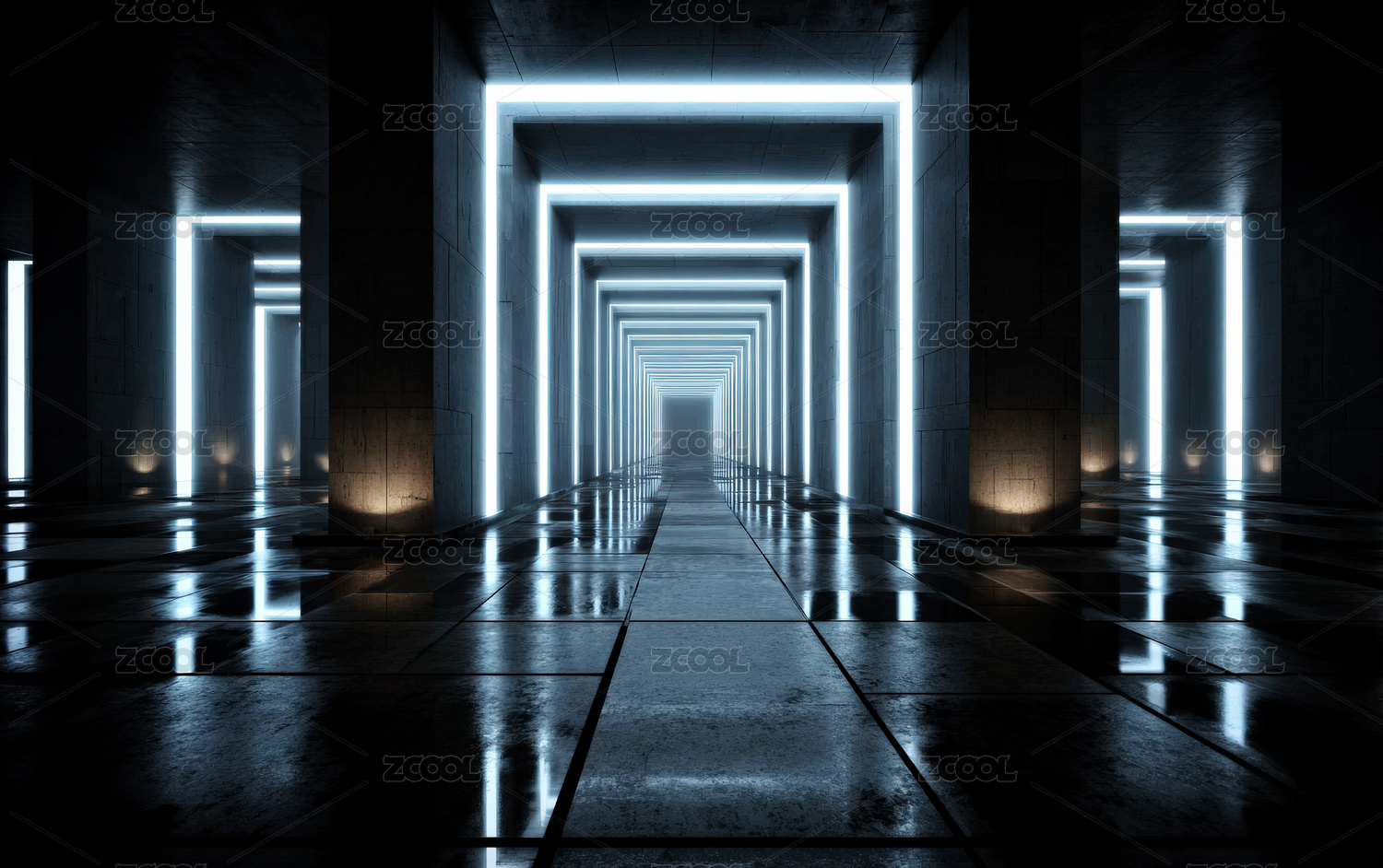 科技,未来,设计,地面,反射,空间,室内,白色,线条,灯光