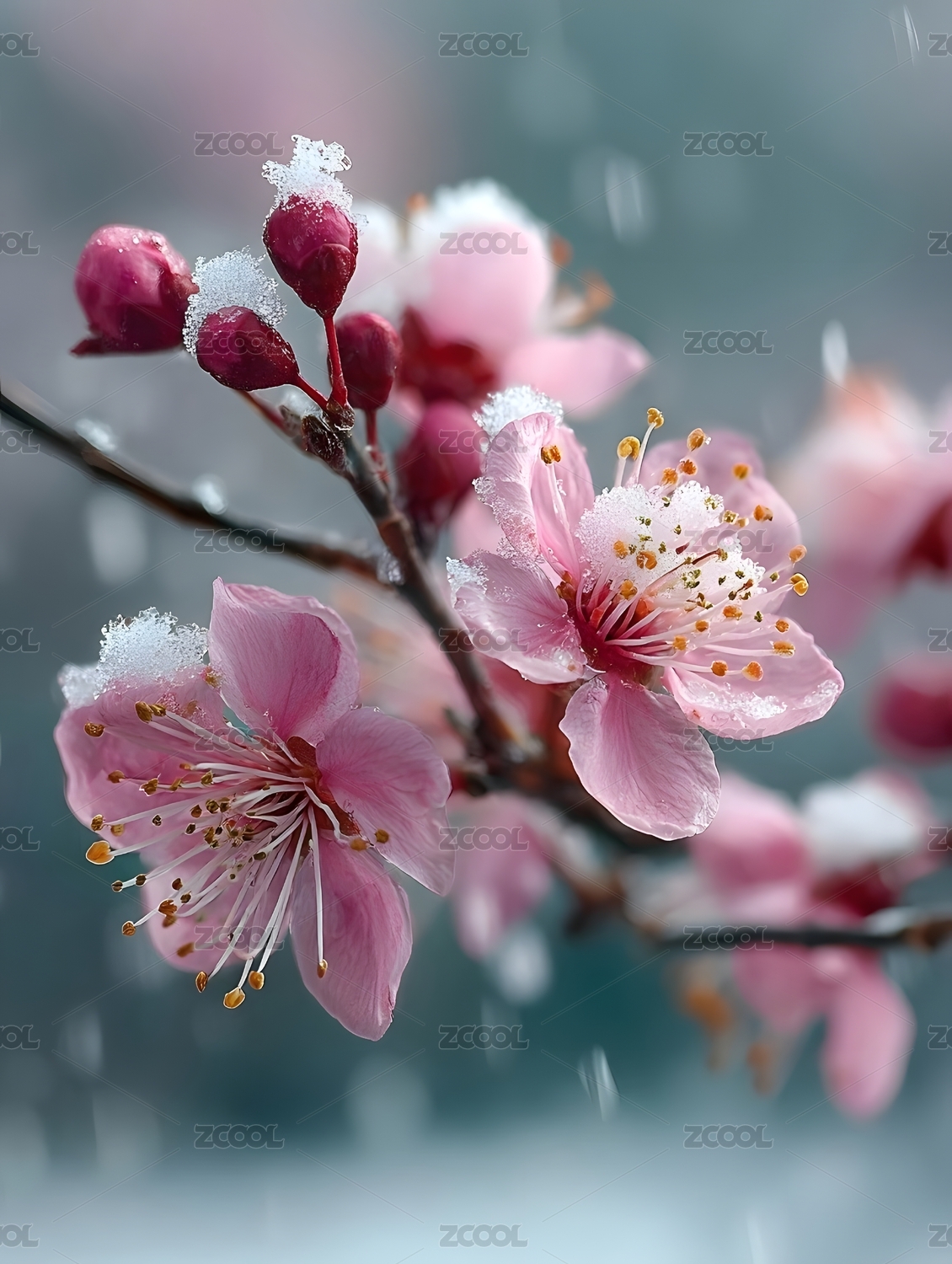 冰霜樱花绽放