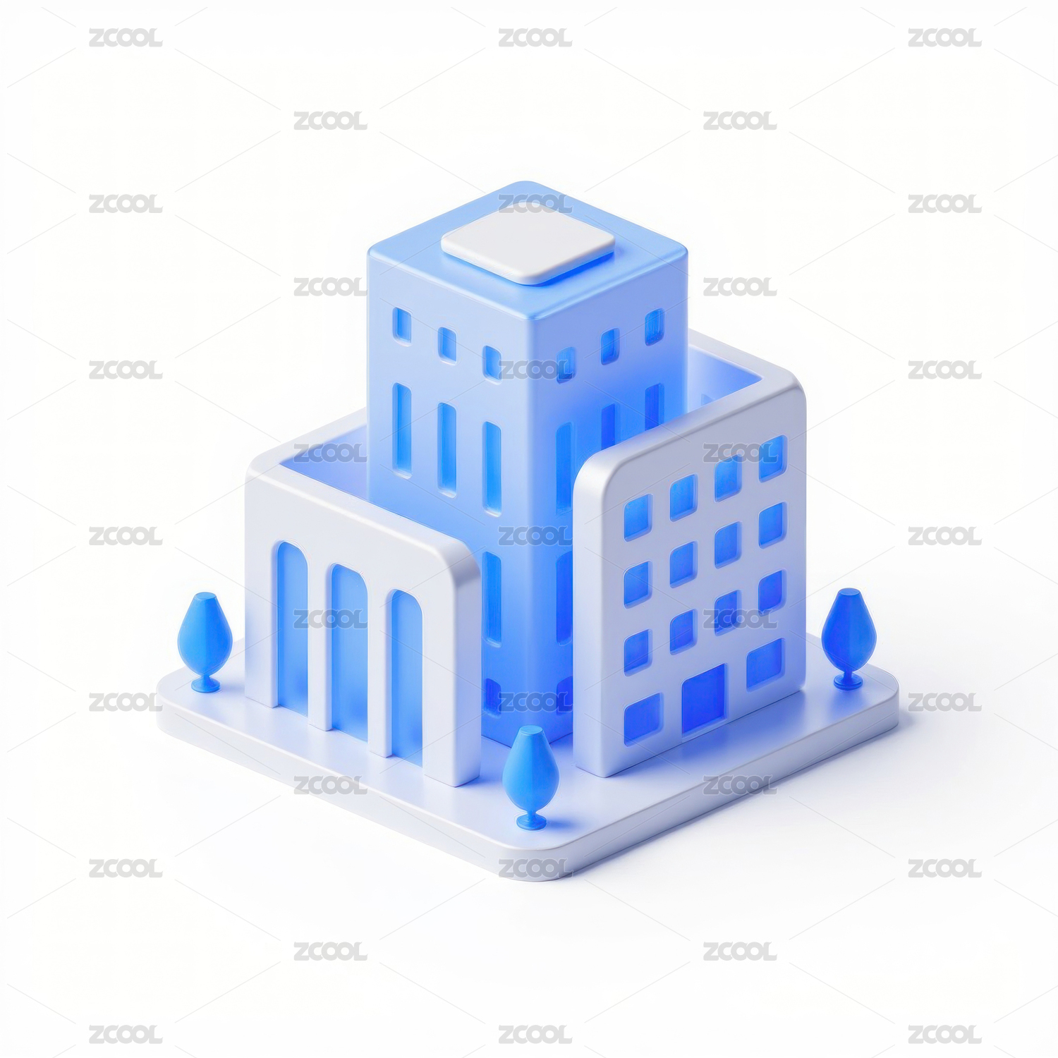 3D,卡通,插画,图标,银行,建筑,大楼,蓝色
