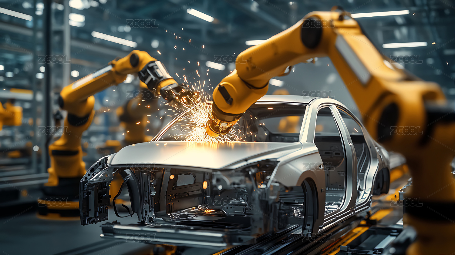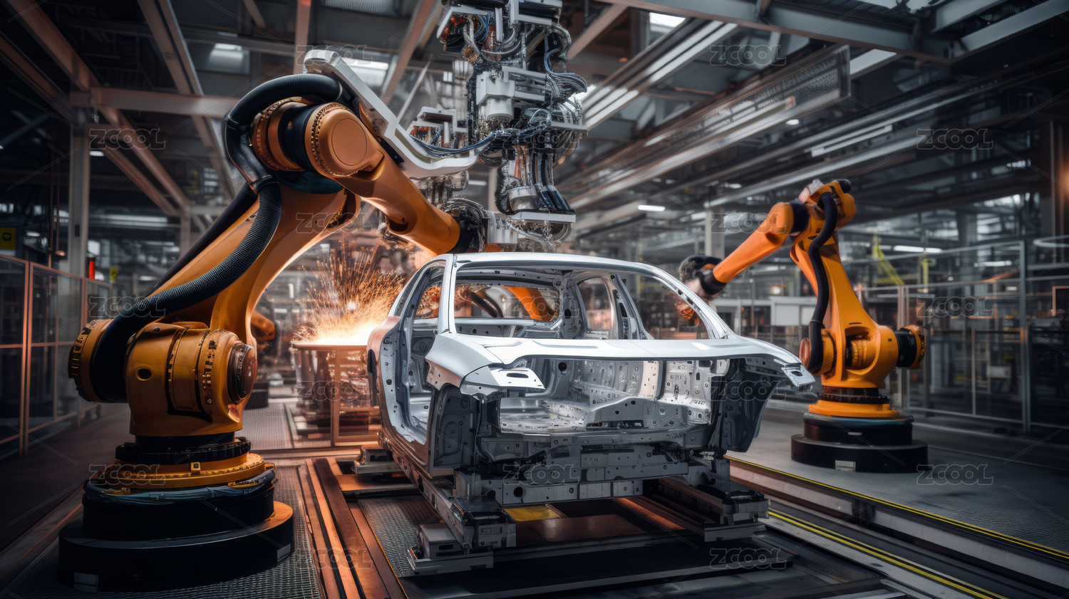 汽车制造工厂的自动化焊接作业