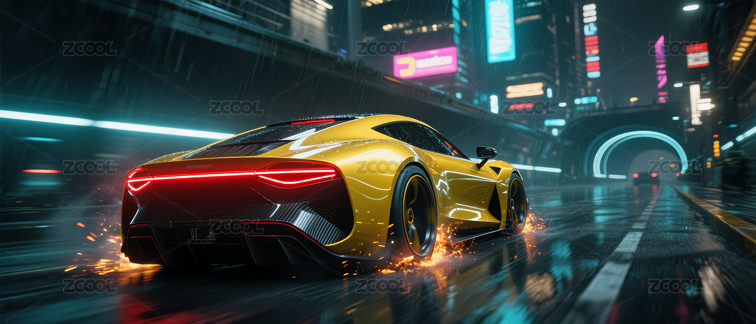 未来,隧道,新能源,汽车,跑车,赛车,三维,场景,赛博朋克,霓虹灯
