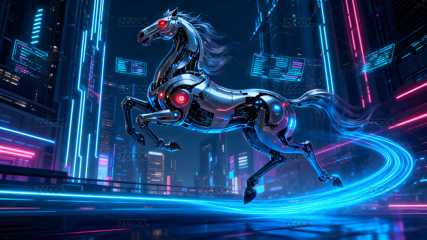 霓虹灯风格的奔跑骏马科技感十足
