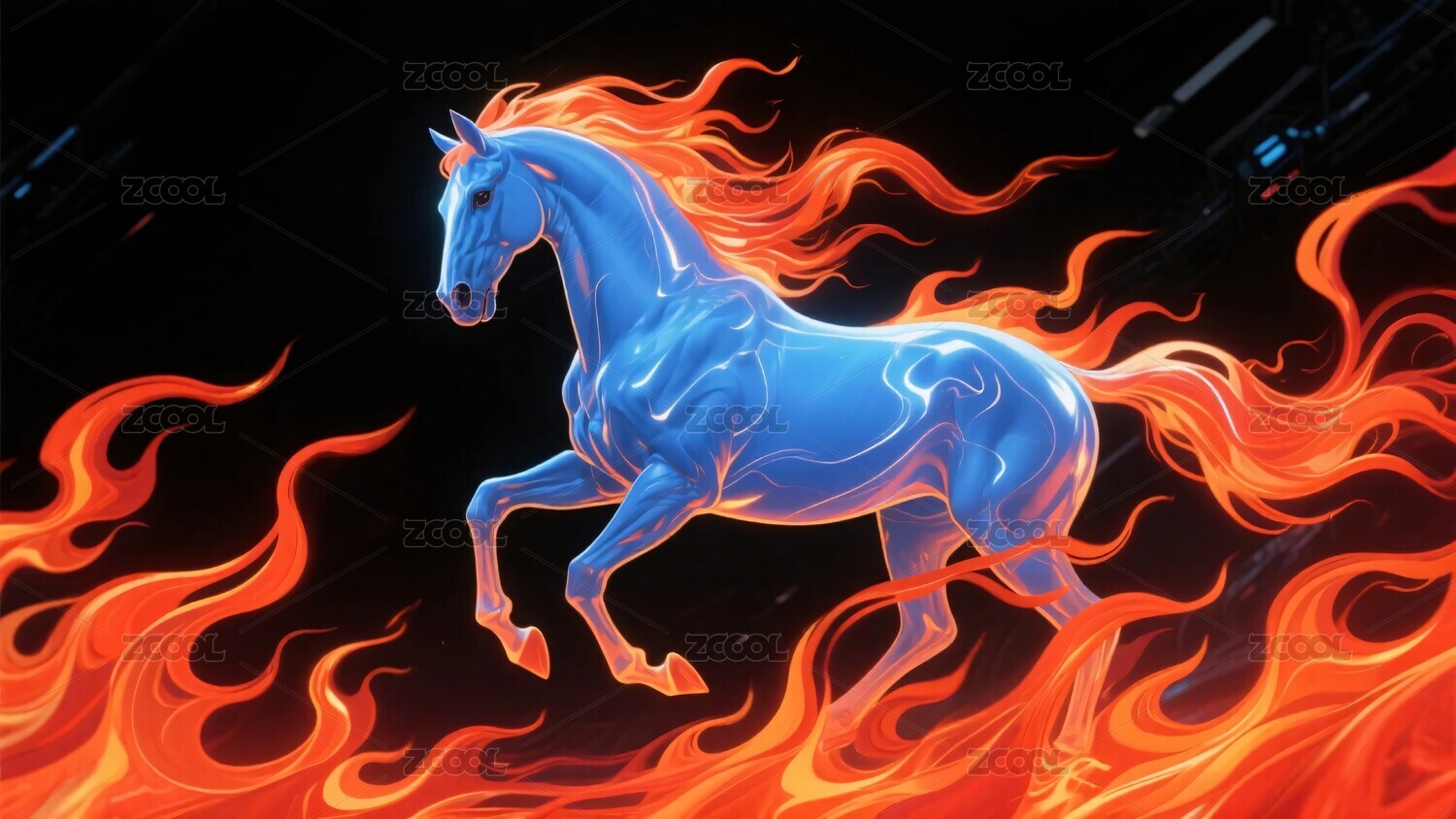 火焰奔腾的黑色骏马